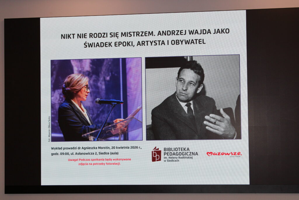20 kwietnia z wykładem „Nikt nie rodzi się mistrzem. Andrzej Wajda jako świadek epoki, artysta i obywatel” wystąpiła w bibliotece dr Agnieszka Morstin – filmoznawczyni, antropolożka kultury, badaczka zajmująca się relacjami filmu z innymi sztukami oraz edukacją humanistyczną w nowych mediach.