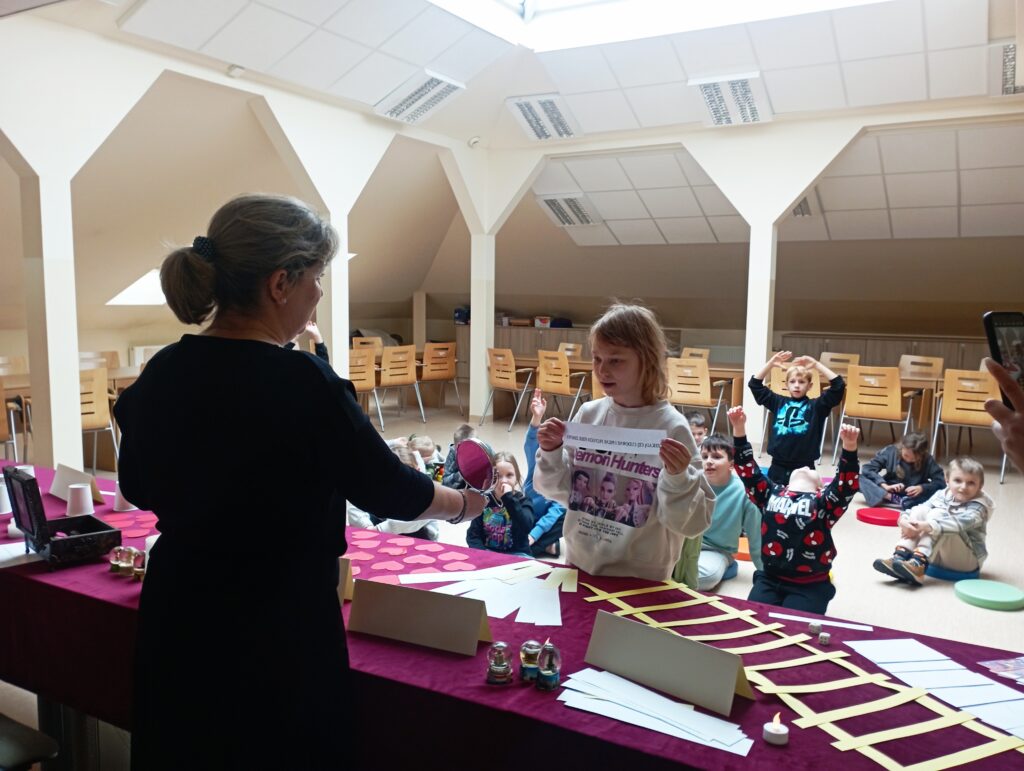 W czasie spotkania dzieci mogły dowiedzieć się, kim mogą zostać w przyszłości, losując przedmioty z magicznego kuferka związane z różnymi popularnymi zawodami. Inną propozycją wróżb były „magiczne kubeczki” z ukrytymi pod nimi przedmiotami. Nasi goście mogli dowiedzieć się co miłego spotka ich w najbliższym czasie. Dokąd wyjadą, z jaką osobą miło spędzą czas lub z kim się zaprzyjaźnią. Zajęciom towarzyszyła ciepła, pełna magii atmosfera, a my ze swojej strony starałyśmy się przybliżyć skąd się wziął zwyczaj obchodzenia andrzejek.