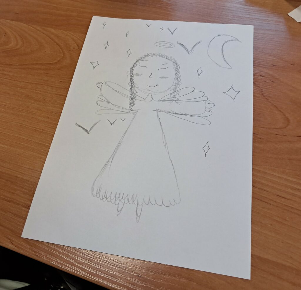 Następnie goście zaprezentowali swoje zdolności plastyczne rysując na kartkach, za pomocą ołówka, wyobrażenia anioła. Każdy rysunek był interesujący, a podejście do tematu nieraz mogło zaskoczyć widza.