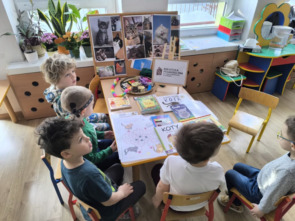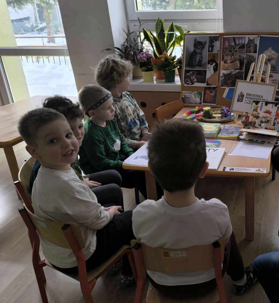Podczas zajęć podkreślono również znaczenie kotów w życiu człowieka – małego i dorosłego. Dzieci chętnie dzieliły się swoimi doświadczeniami i spostrzeżeniami, a wspólne czytanie przyniosło wiele radości oraz ciepłych emocji.