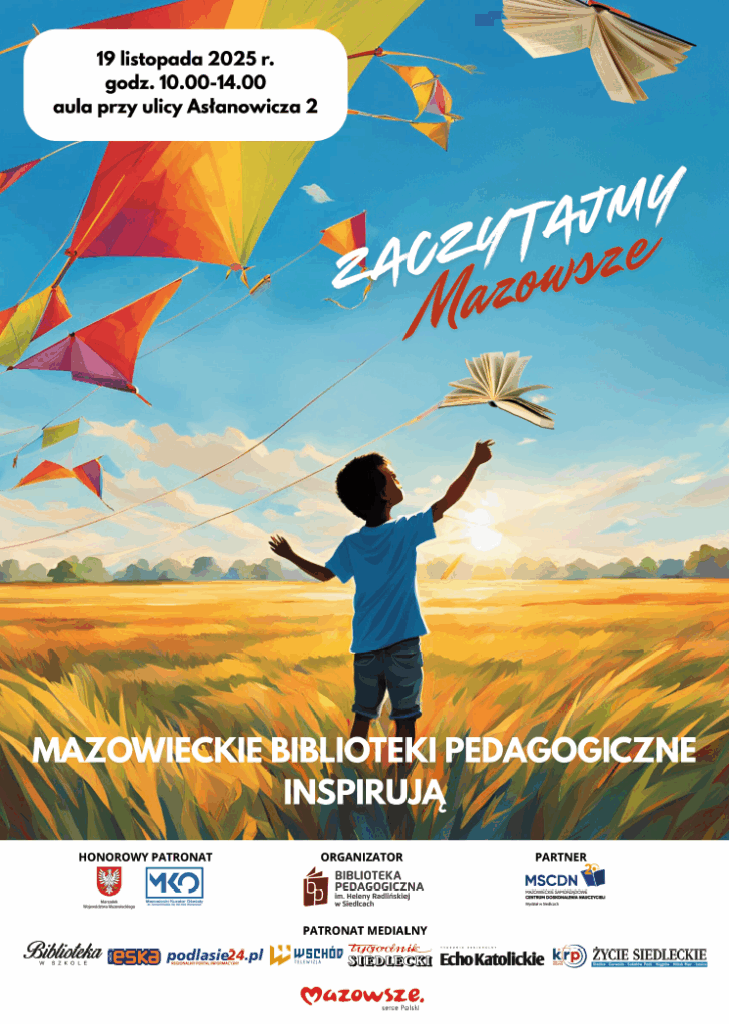 Biblioteka Pedagogiczna im. Heleny Radlińskiej w Siedlcach wraz z Bibliotekami Pedagogicznymi Mazowsza zaprasza na II konferencję Zaczytajmy Mazowsze – Mazowieckie Biblioteki Pedagogiczne inspirują. Hasło tegorocznej edycji – Biblioteka jest kobietą.