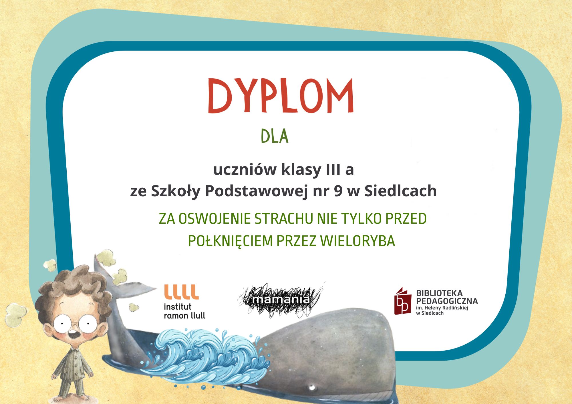 Jako pamiątkę ze spotkania dzieci przygotowały zakładki z wielorybem, a za zaangażowanie w trakcie zajęć otrzymały dyplom.