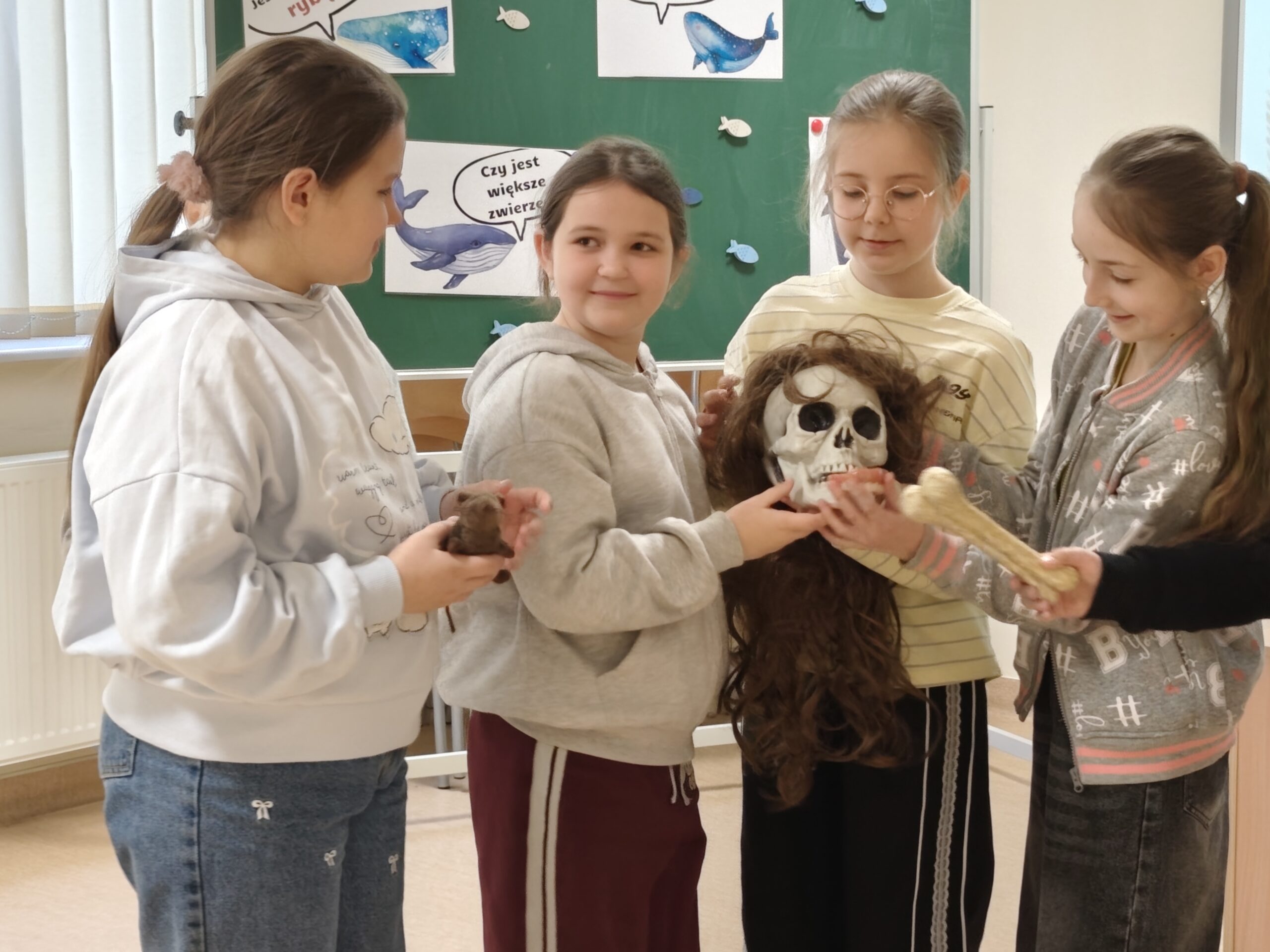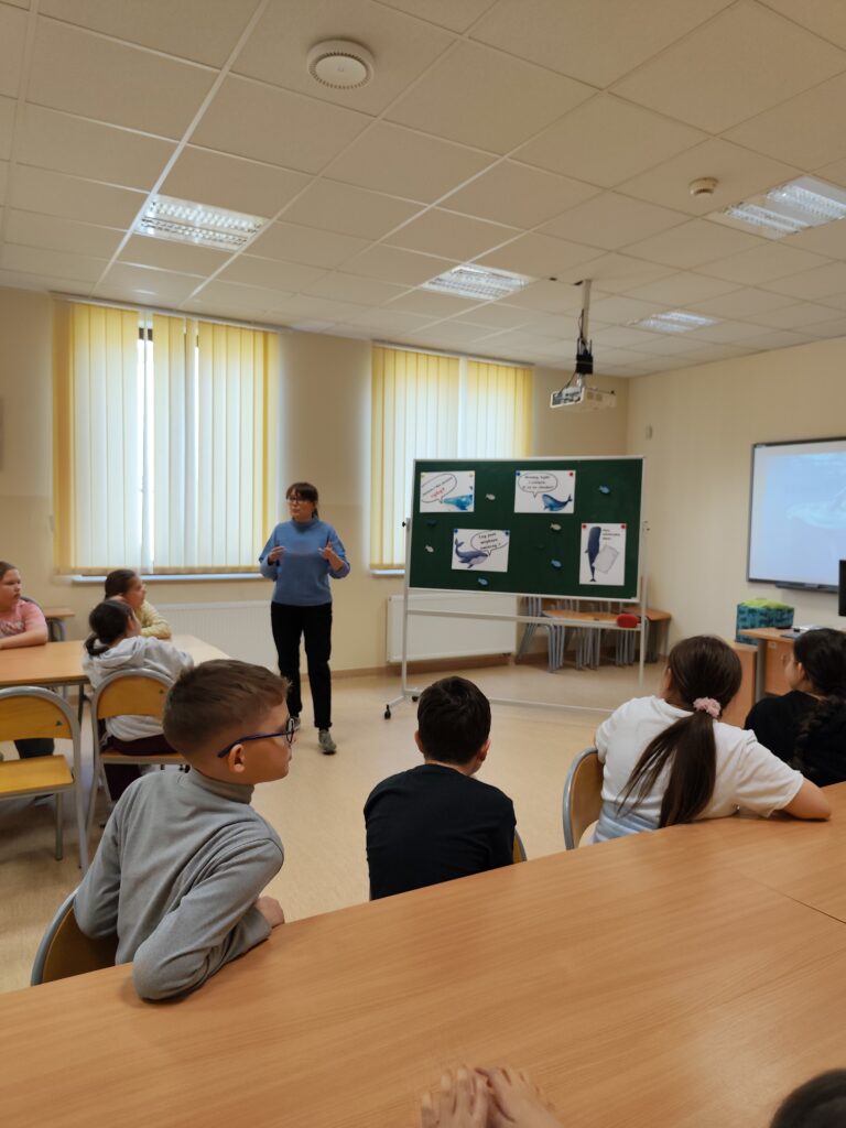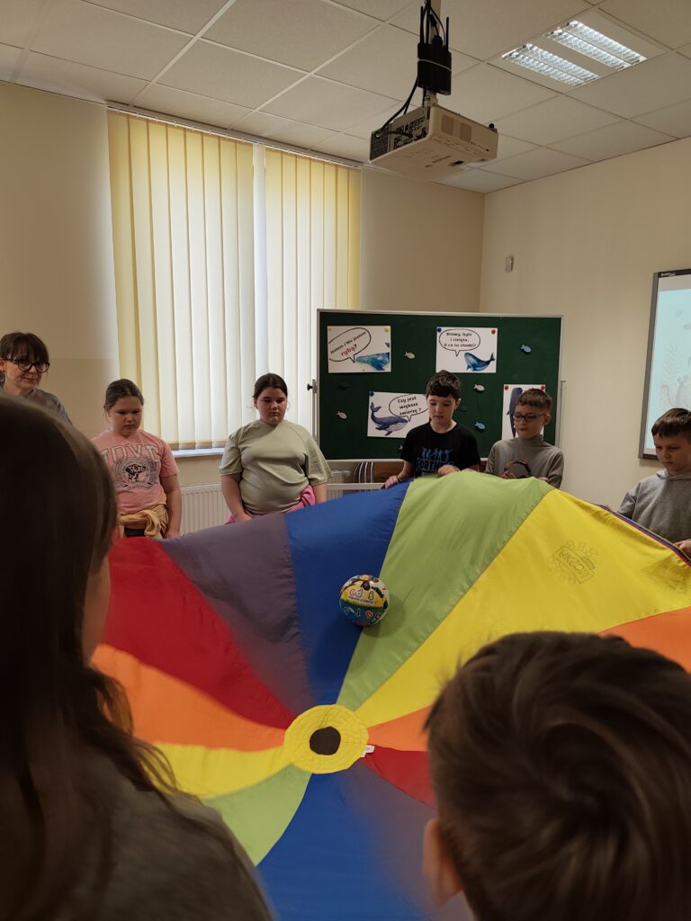 Wykorzystując edukację przez zabawę, rozmawialiśmy o tym, czym jest strach, jak się przejawia, jak się z nim zmierzyć czy jak się nim zaopiekować. Wreszcie o tym, czy jest nam potrzebny. W dociekaniach towarzyszyła nam postać wieloryba oraz Martin, bohater książki Susanny Isern „A co, jeśli zje mnie wieloryb”. Puzzle, ciekawostki na temat tego zwierzęcia, zabawy z workiem-niespodzianką czy chustą animacyjną pomogły nam w ciekawy sposób opowiedzieć uczniom o tym, jak ważne jest dostrzeganie swoich emocji oraz radzenie sobie z nimi.