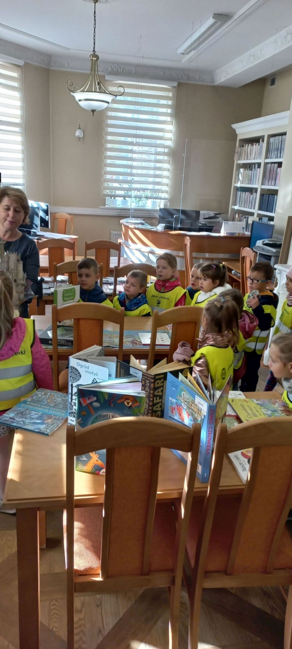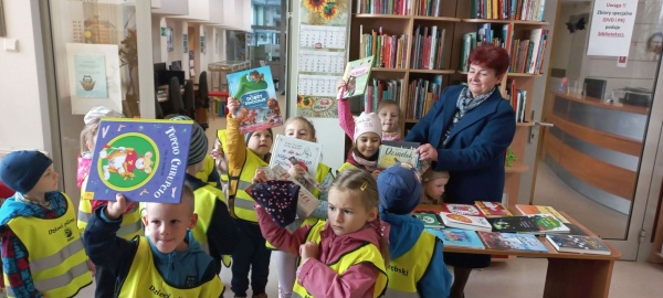 29 września gościliśmy w naszej bibliotece grupę 5 latków z Miejskiego Przedszkola nr 6 w Siedlcach. Dzieci poznały krótką historię biblioteki, kto może korzystać z jej zbiorów i na jakich zasadach. Dzieci zwiedziły bibliotekę, poznały informatorium, wypożyczalnię, czytelnię i magazyn. Następnie w czytelni obejrzały wystawę książek ze zbioru Magiczna Książka. Kilka z tych książek przeczytałyśmy z dziećmi opowiadając historie spisane na kartkach książki. Ogromne zainteresowanie wzbudziły książki napisane alfabetem Braille’a i o Czerwonym kapturku opowiedziana piktogramami. Na zakończenie zajęć dzieci otrzymały pamiątkowe zakładki i pieczątkę z logo biblioteki.