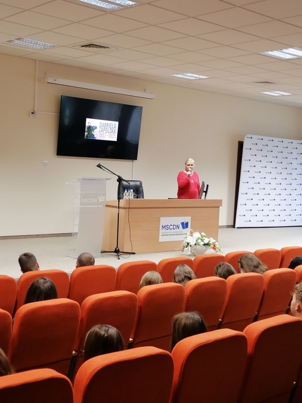 19 października po raz kolejny odwiedziła naszą bibliotekę Pani prof. dr hab. Maria Olszewska, pracownik naukowy Instytutu Literatury Polskiej Uniwersytetu Warszawskiego. W czasie spotkania przybliżyła ona młodzieży postać pisarki Gabrieli Zapolskiej. Jedno z największych dzieł autorki, dramat „Moralność Pani Dulskiej” był w tym roku czytany w całej Polsce w ramach Narodowego Czytania. Jak podkreśliła Pani Maria Olszewska powieść Gabrieli Zapolskiej została napisana, aby wstrząsnąć opinią publiczną. Uniwersalne przesłanie moralne tekstu jest aktualne również obecnie.