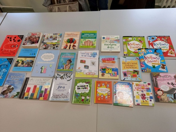 Pracownicy biblioteki zaprezentowali uczestnikom książki znajdujące się w zbiorach biblioteki, które mogą posłużyć nauczycielom do realizowania twórczych pomysłów podczas zajęć dydaktycznych w pracy z dziećmi.