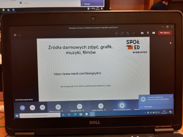 12 marca odbyło się szkolenie online dla nauczycieli bibliotekarzy Narzędzia cyfrowe w bibliotece – tworzenie materiałów graficznych, które poprowadziła Pani Aneta Skwierczyńska – trener SpołEd i bibliotekarz ze Szkoły Podstawowej nr 10 w Siedlcach.