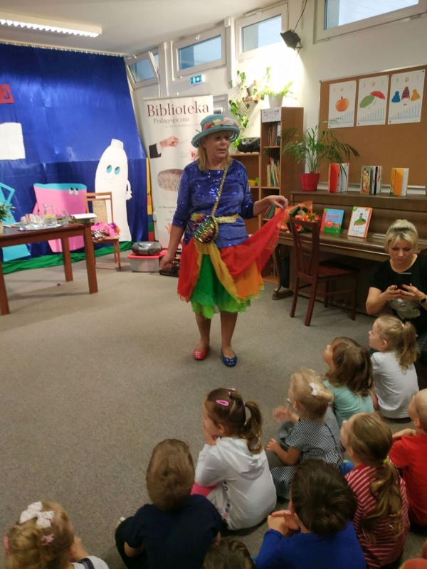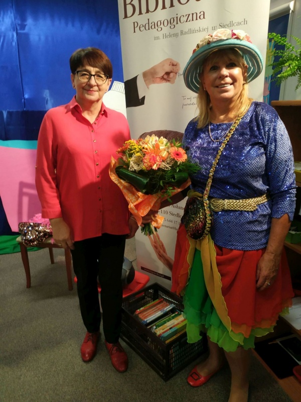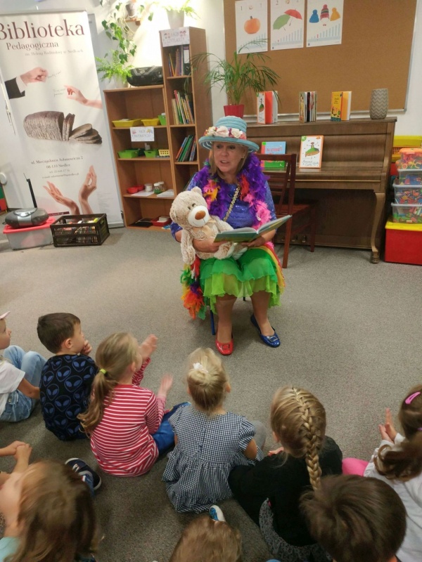 28 października na zaproszenie naszej biblioteki oraz Miejskiego Przedszkola nr 17 przyjechała do Siedlec znana pisarka, autorka tekstów piosenek dla dzieci, scenarzystka programów, legendarnego programu Tik-Tak Pani Ewa Chotomska. Maluchy przywitała w swoim barwnym stroju jak z bajki, popularnej Ciotki Klotki. W trakcie tego spotkania dzieci miały okazję wziąć udział we wspólnych zabawach ruchowych. Pani Ewa zachęcała do śpiewania swoich znanych i lubianych piosenek takich jak: Szczotka, pastaMydło lubi zabawęFantazja. Autorka rozmawiała z dziećmi o jej ulubionych zwierzakach oraz o zwierzętach, które stały się bohaterami jej książek jak pies Felek Pareras, czy zając Poziomka. Cytowała fragmenty własnej twórczości, jak również opowiadań i wierszy swojej mamy znanej wszystkim pisarki – Wandy Chotomskiej. Na zakończenie spotkania chętnie składała autografy do książek.
