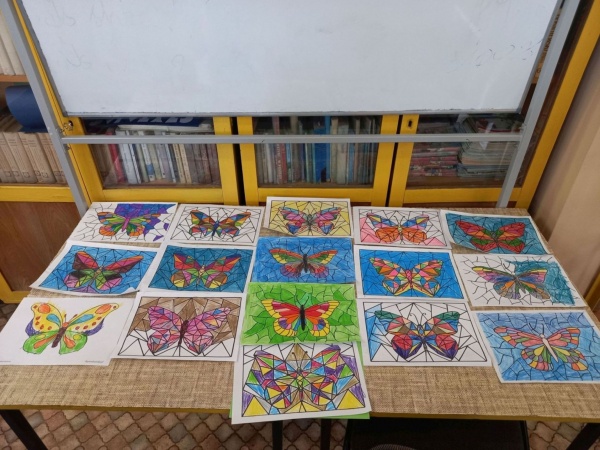 Następnie dzieci wykonywali różne aktywności: kolorowały motyle, wycinały je oraz kodowały owady z poznanej opowieści.