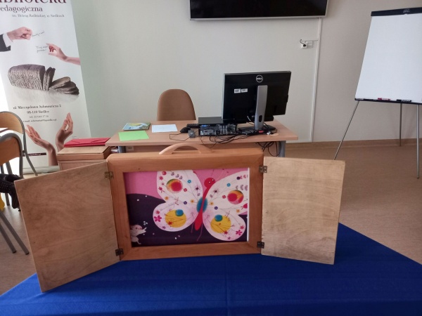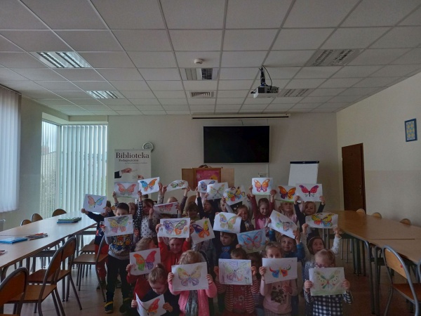 21 kwietnia pracownicy biblioteki przeprowadzili zajęcia czytelnicze z wykorzystaniem teatrzyku kamishibai dla czterolatków z Miejskiego Przedszkola nr 15 w Siedlcach. Podczas spotkania  dzieci miały okazję wysłuchać bajkę Nathalie Dargent pt. Mój przyjaciel Kemushi. Opowiada ona o małej gąsienicy żyjącej w ogrodzie, która przemienia się w kolorowego motyla.