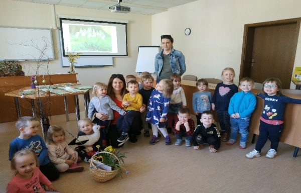 24 marca, w pierwszym tygodniu wiosny, w bibliotece gościliśmy 3 latki z Miejskiego Przedszkola nr 25 w Siedlcach. Przedszkolaki uczestniczyły w zajęciach edukacyjnych Wiosna, wiosna jesteś już. Na początku wysłuchały utworu Antonio Vivaldiego „Cztery Pory Roku – Wiosna”. Z zainteresowaniem słuchały wierszy „Przybycie wiosny” Bożeny Formy, „Przyjście wiosny” Jana Brzechwy, bajki „Reksio poznaje rok” Beaty Dawczak i Izabeli Spychały oraz przysłów z książki „Rok w przysłowiach polskich”. Przygotowały koszyk dla Pani Wiosny – rzeczy, które kojarzą się z porą roku jaka jest aktualnie za oknem. Poznały i nazywały rośliny, które kwitną na początku wiosny, obejrzały film „Bolek i Lolek – wiosenne porządki”.