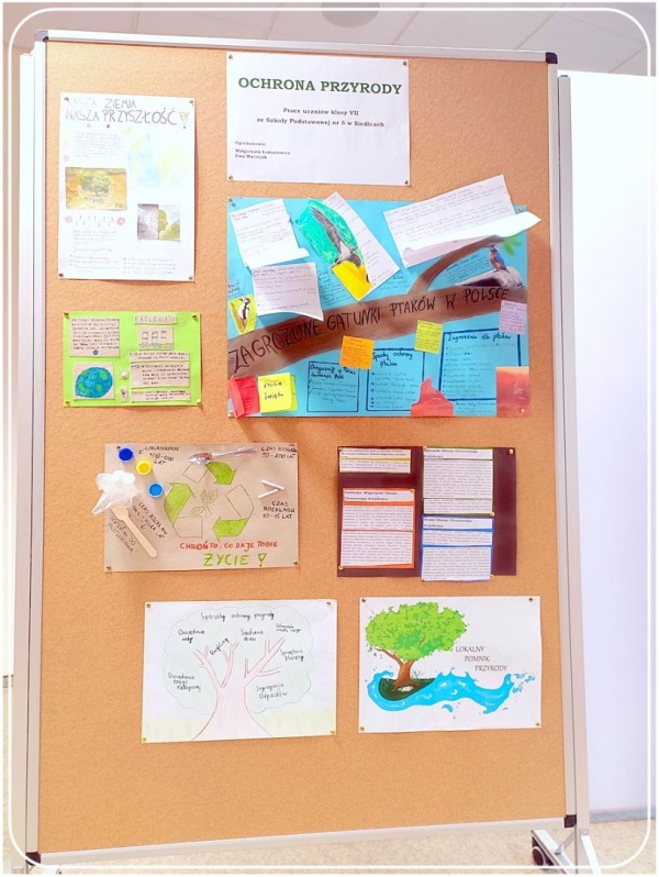 – Ochrona przyrody – prace plastyczne uczniów klasy VII Szkoły Podstawowej nr 5 w Siedlcach (opiekunowie Małgorzata Łukasiewicz, Ewa Maciejak)