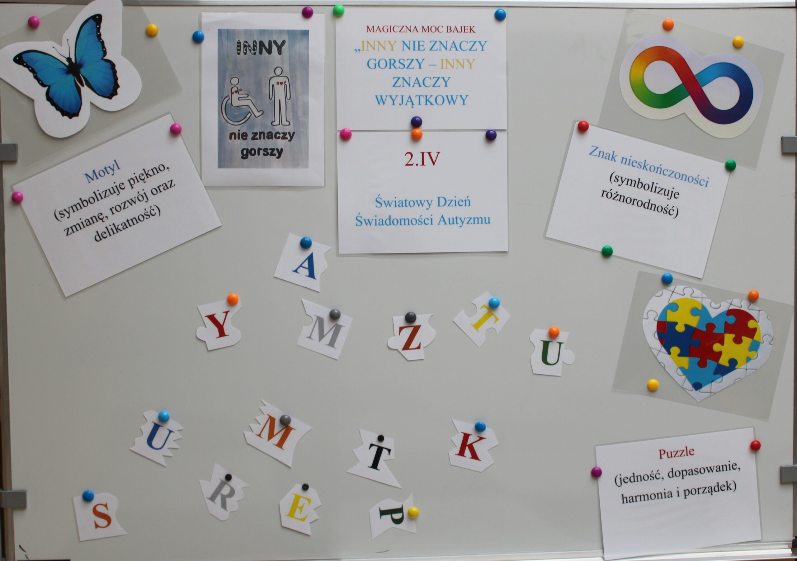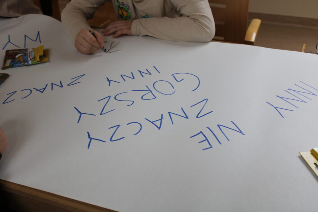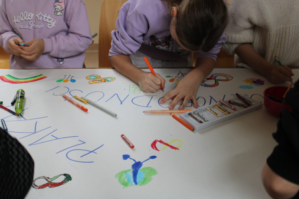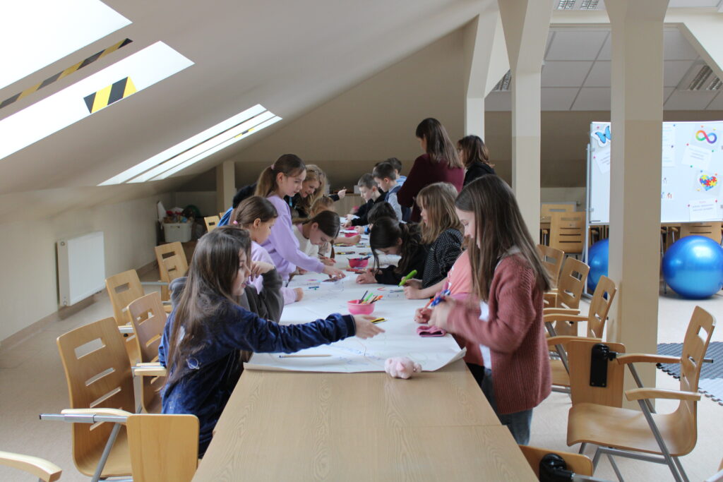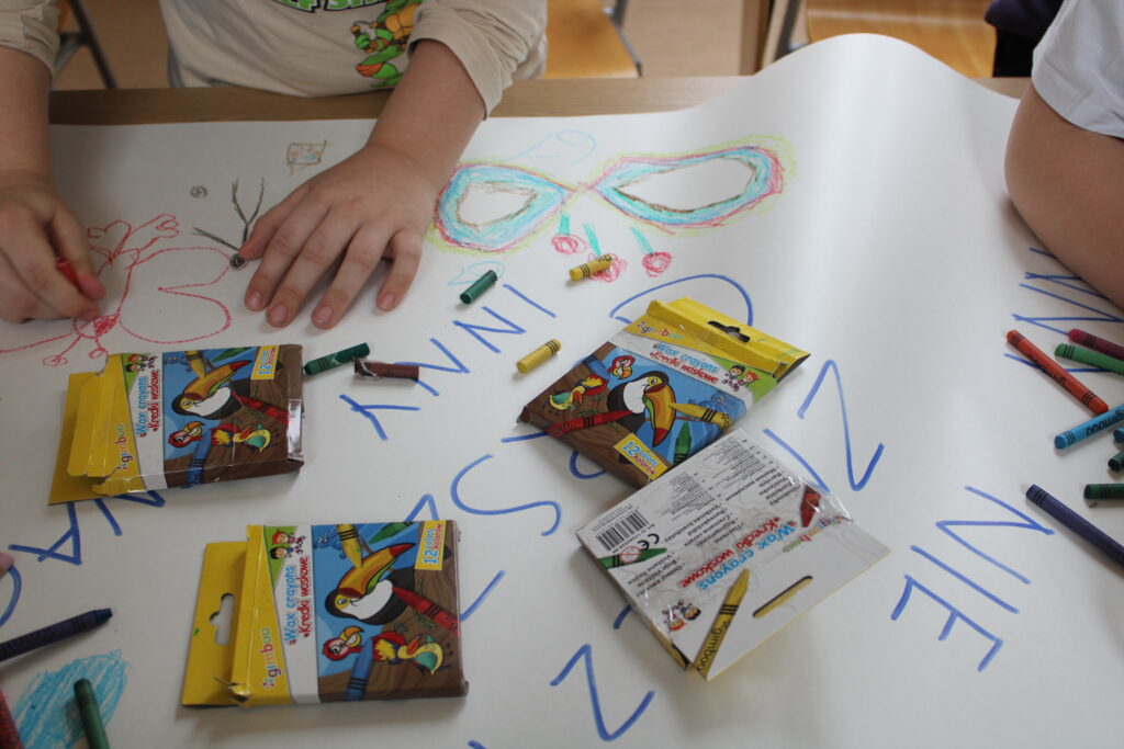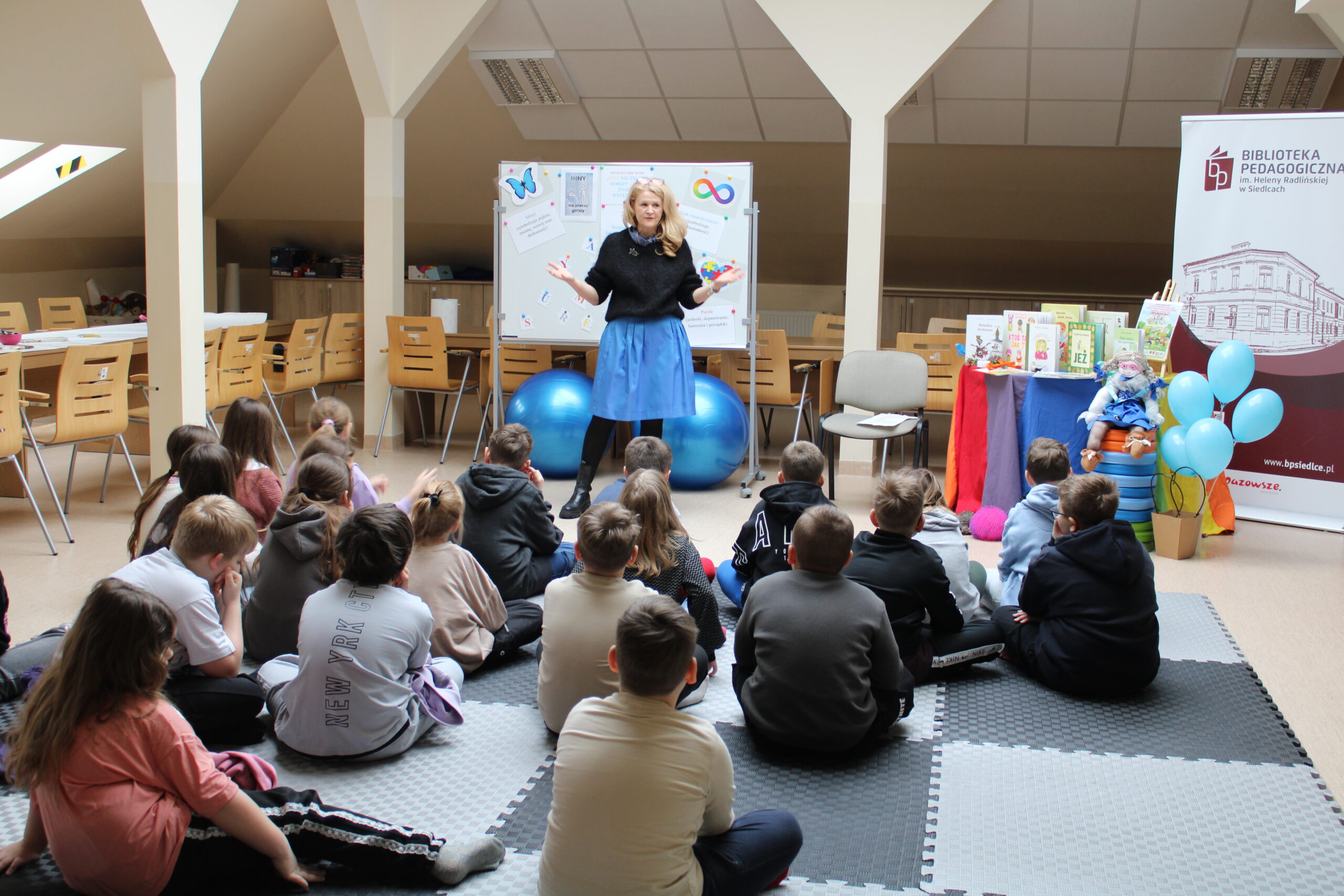 17 lutego w bibliotece odbyły się zajęcia z IV modułu „Międzynarodowego Projektu Magiczna Moc Bajek – Razem Pokonamy Każdą Barierę”. Uczestnikami spotkania były dzieci z klasy III b Szkoły Podstawowej nr 7 w Siedlcach. Kolor niebieski, znak nieskończoności, puzzle czy motyl są symbolami osób znajdujących się w spektrum autyzmu i tej tematyce poświęcona była lekcja. Po krótkiej wymianie informacji, dzieci miały możliwość wysłuchania fragmentów opowiadania Roksany Jędrzejewskiej -Wróbel pt. „Kosmita”. Razem z naszą maskotką Kulturką pokazałam uczestnikom jak mogą odczuwać dźwięk, dotyk, zapach czy światło osoby dotknięte tym problemem. To co dla większości dzieci jest normą, przyjemnością, dla osoby w spektrum może być sytuacją nie do zniesienia. Zabawa z kudłaczkiem w różnorodność, stała się niezłą atrakcją. Zwieńczeniem spotkania było wykonanie „Plakatu Świadomości – Tworzymy wspólną mozaikę” na którym dzieci mogły uzewnętrznić swoje symboliczne postrzeganie inności. Wspólnie spędzony czas zakończyliśmy pamiątkowym zdjęciem oraz niebieskim smakołykiem. Dziękuje bardzo Pani Dyrektor Dorocie Salamon, Paniom z biblioteki, Paniom Wychowawczyniom oraz Dzieciom za udział w zajęciach. Mam nadzieję, że to spotkanie pozwoli uczestnikom w bardziej szczególny sposób spojrzeć na inność, która jest wyjątkowa.