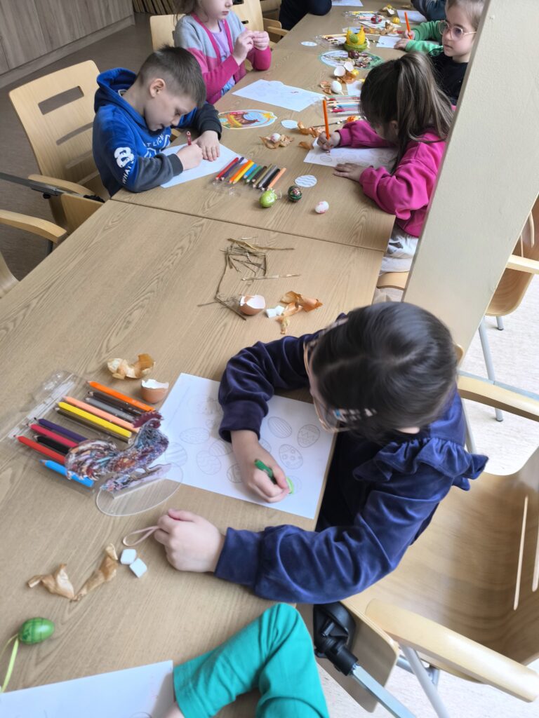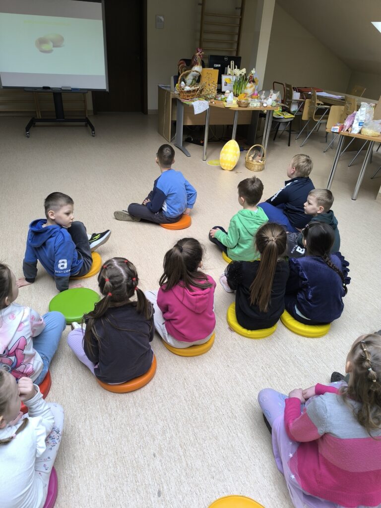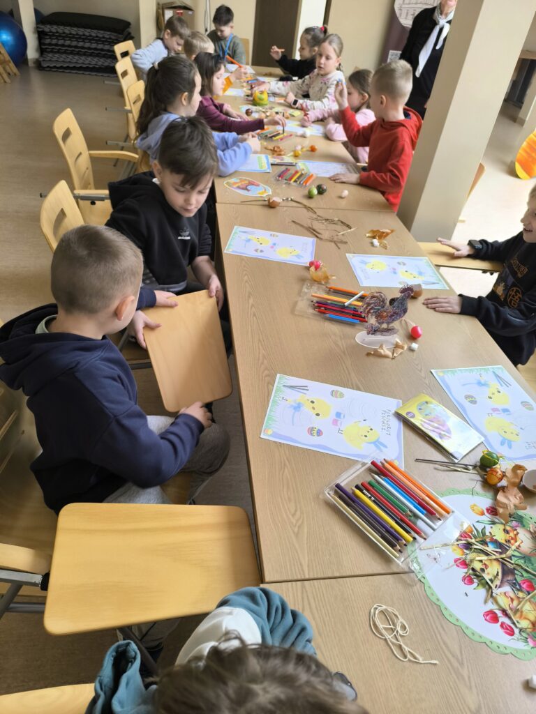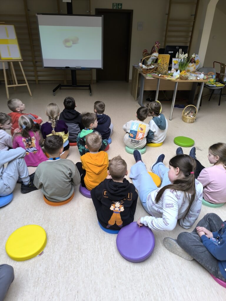 Krzyżówki i przysłowia wniosły dodatkowy element zabawy i nauki. Największą atrakcją okazało się rozpoznawanie jaj domowego ptactwa. Dużym zainteresowaniem cieszyło się również wspólne oglądanie bajek: „Reksio i nośna kura” oraz „Dziwny świat kota Filemona”. Uczestnicy mieli także okazję stworzyć własną sensoryczną pisankę.