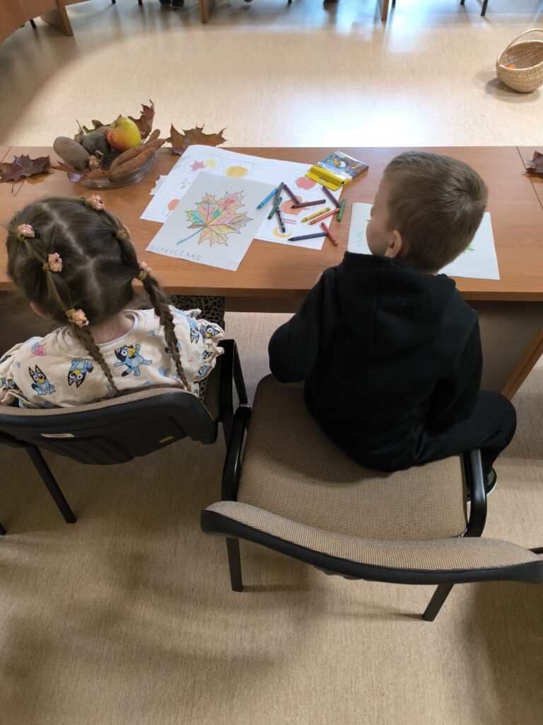 9 października w naszej bibliotece odbyło się wyjątkowe spotkanie z klasą zerową ze Szkoły Podstawowej nr 7 w Siedlcach i z Przedszkola Niepublicznego – Ochronka Zgromadzenia Sióstr Służebniczek NM w Siedlcach. Dzieci uczestniczyły w zajęciach edukacyjnych poświęconych aktualnej porze roku – jesieni, która rozgościła się już za naszymi oknami. Spotkanie rozpoczęło się od rozmowy o charakterystycznych cechach jesieni. Przedszkolaki wykazały się dużą wiedzą – opowiadały o kolorowych liściach, kasztanach, zmianach w pogodzie. Dzieci wysłuchały utworu Antonio Vivaldiego „Cztery Pory Roku – Jesień”, który wprowadził je w nastrojowy klimat tej pory roku. Muzyka klasyczna stała się inspiracją do dalszej rozmowy. W czasie zajęć sześciolatki miały okazję zobaczyć książki o tematyce jesiennej, pełne barwnych ilustracji i ciekawych opowieści, które pomogły im lepiej zrozumieć zmiany zachodzące w przyrodzie. Przedszkolaki chętnie dzieliły się swoimi spostrzeżeniami i doświadczeniami. Poznały również przysłowia związane z tą porą roku. W części plastycznej dzieci rysowały to, co najbardziej kojarzy im się z jesienią. Powstały piękne prace przedstawiające jesienny krajobraz i kolorowe liście.
