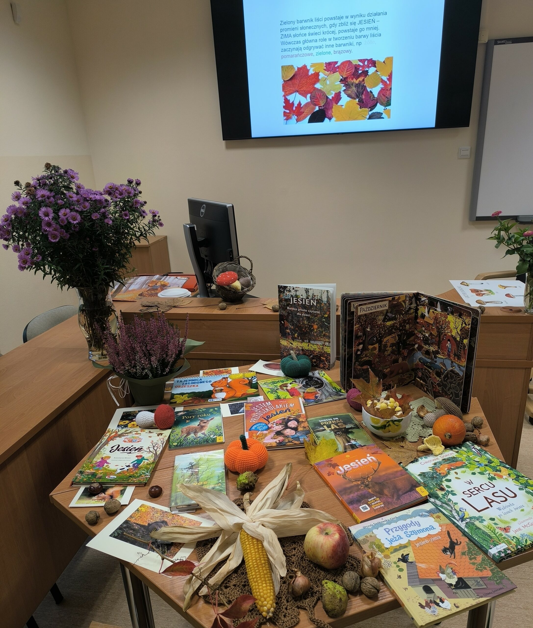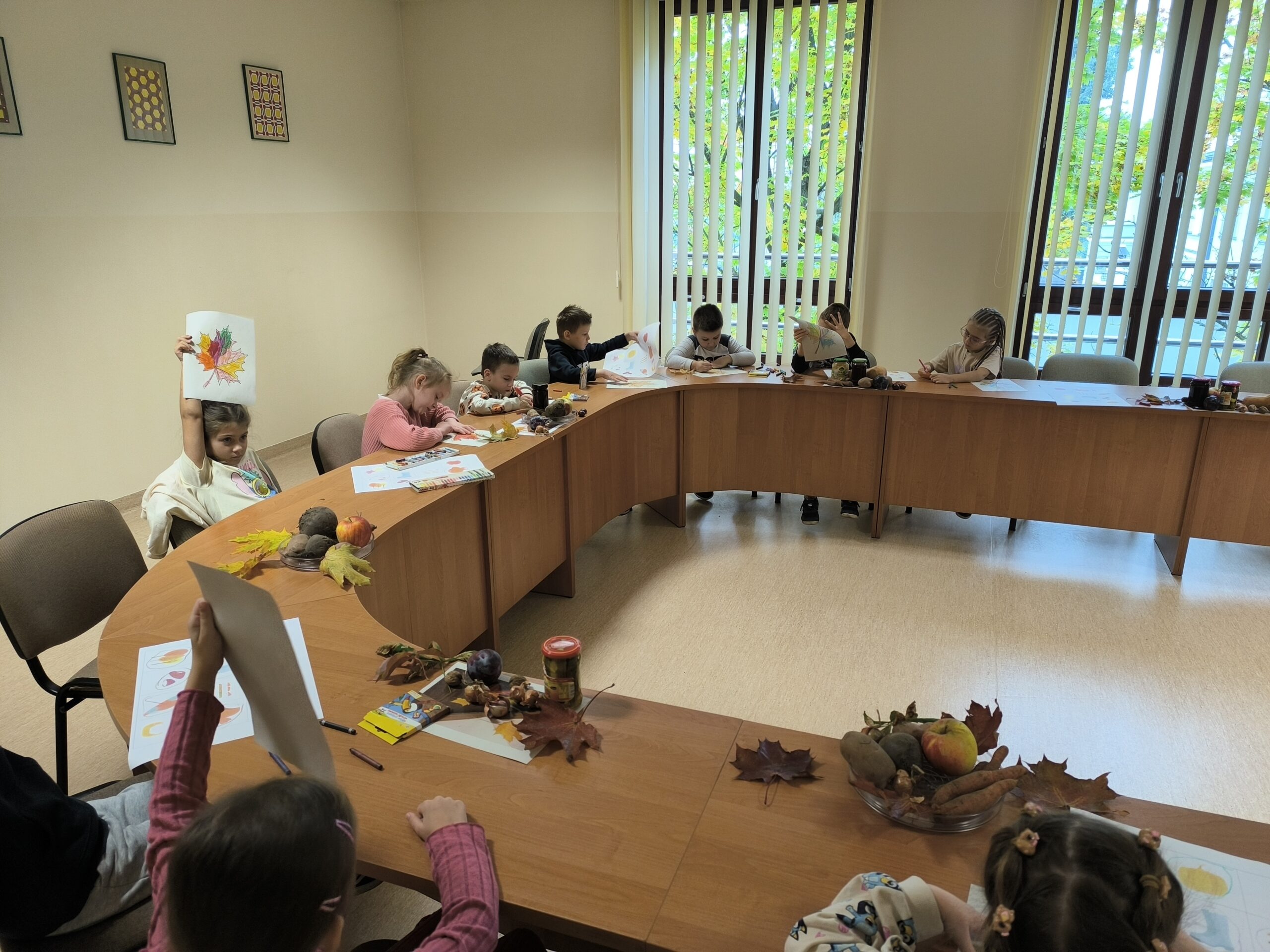 9 października w naszej bibliotece odbyło się wyjątkowe spotkanie z klasą zerową ze Szkoły Podstawowej nr 7 w Siedlcach i z Przedszkola Niepublicznego – Ochronka Zgromadzenia Sióstr Służebniczek NM w Siedlcach. Dzieci uczestniczyły w zajęciach edukacyjnych poświęconych aktualnej porze roku – jesieni, która rozgościła się już za naszymi oknami. Spotkanie rozpoczęło się od rozmowy o charakterystycznych cechach jesieni. Przedszkolaki wykazały się dużą wiedzą – opowiadały o kolorowych liściach, kasztanach, zmianach w pogodzie. Dzieci wysłuchały utworu Antonio Vivaldiego „Cztery Pory Roku – Jesień”, który wprowadził je w nastrojowy klimat tej pory roku. Muzyka klasyczna stała się inspiracją do dalszej rozmowy. W czasie zajęć sześciolatki miały okazję zobaczyć książki o tematyce jesiennej, pełne barwnych ilustracji i ciekawych opowieści, które pomogły im lepiej zrozumieć zmiany zachodzące w przyrodzie. Przedszkolaki chętnie dzieliły się swoimi spostrzeżeniami i doświadczeniami. Poznały również przysłowia związane z tą porą roku. W części plastycznej dzieci rysowały to, co najbardziej kojarzy im się z jesienią. Powstały piękne prace przedstawiające jesienny krajobraz i kolorowe liście.