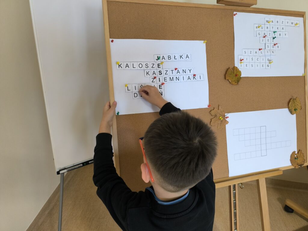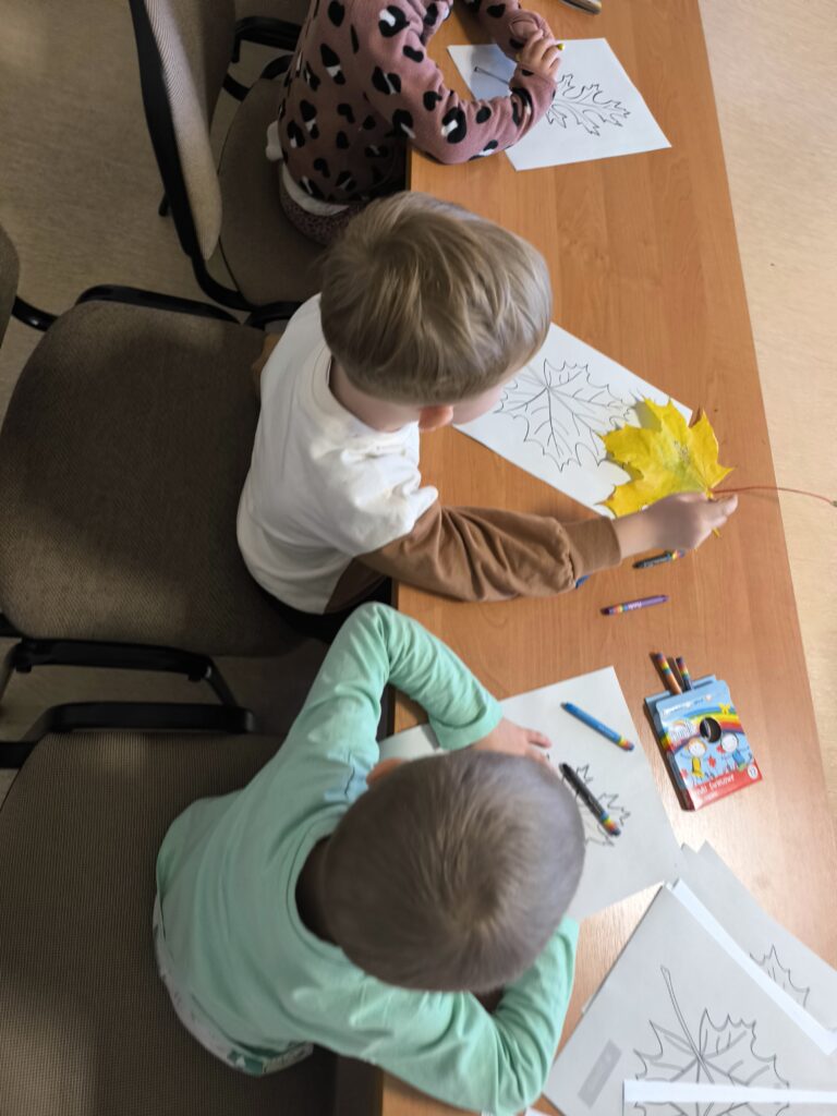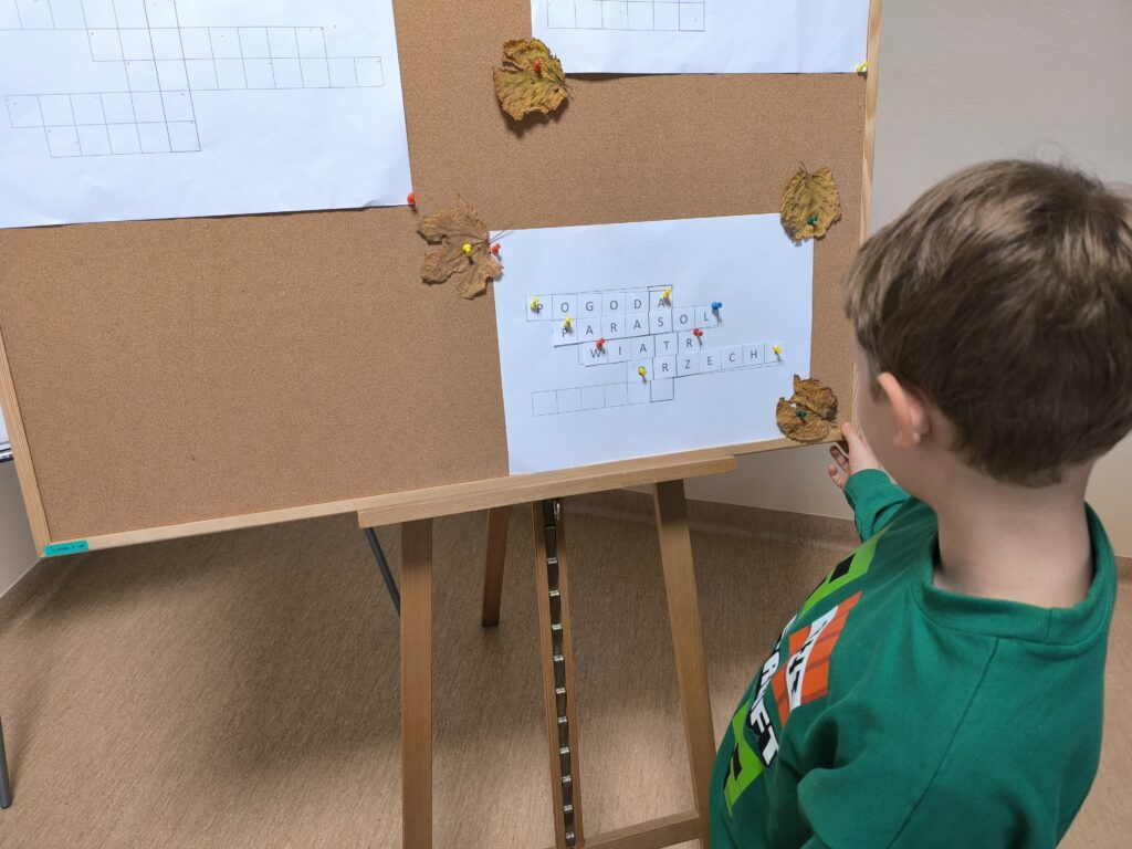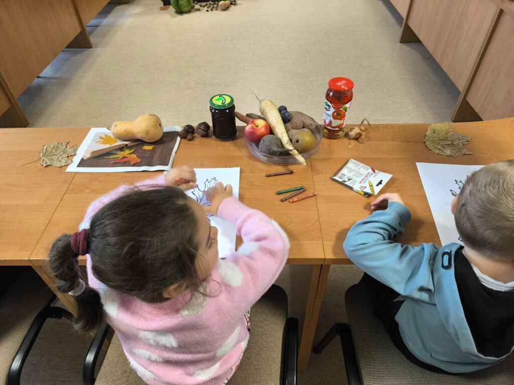 Podczas zajęć mali uczestnicy oglądali jesienne książki pełne barwnych ilustracji i ciekawych historii, rozwiązywali tematyczne krzyżówki, poznawali jesienne przysłowia oraz rysowali to, co najbardziej kojarzy im się z tą porą roku. Powstały piękne, kolorowe prace!