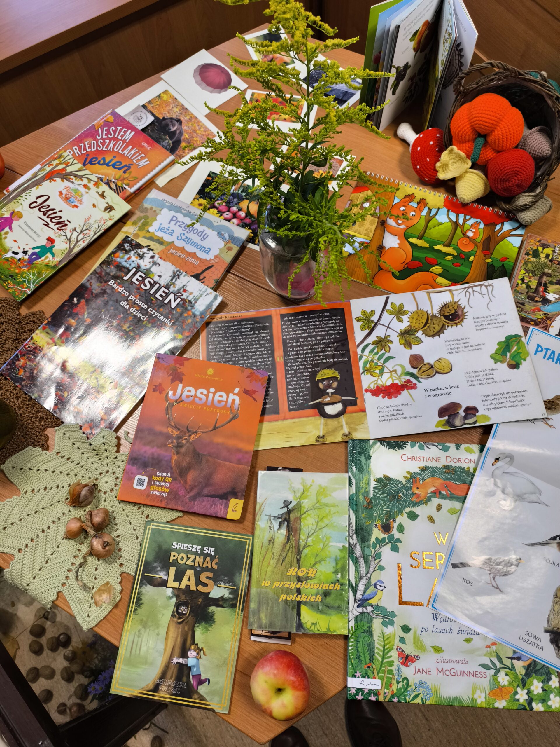 Podczas zajęć mali uczestnicy oglądali jesienne książki pełne barwnych ilustracji i ciekawych historii, rozwiązywali tematyczne krzyżówki, poznawali jesienne przysłowia oraz rysowali to, co najbardziej kojarzy im się z tą porą roku. Powstały piękne, kolorowe prace!