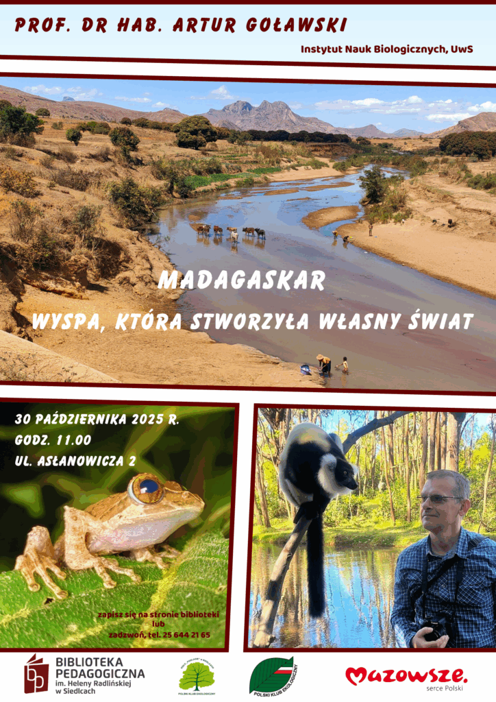 Serdecznie zapraszamy 30 października o godz. 11:00 na spotkanie z ornitologiem, zoologiem i ekologiem prof. dr. hab. Arturem Goławskim, pracownikiem Instytutu Nauk Biologicznych Uniwersytetu w Siedlcach.