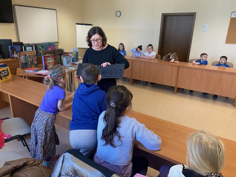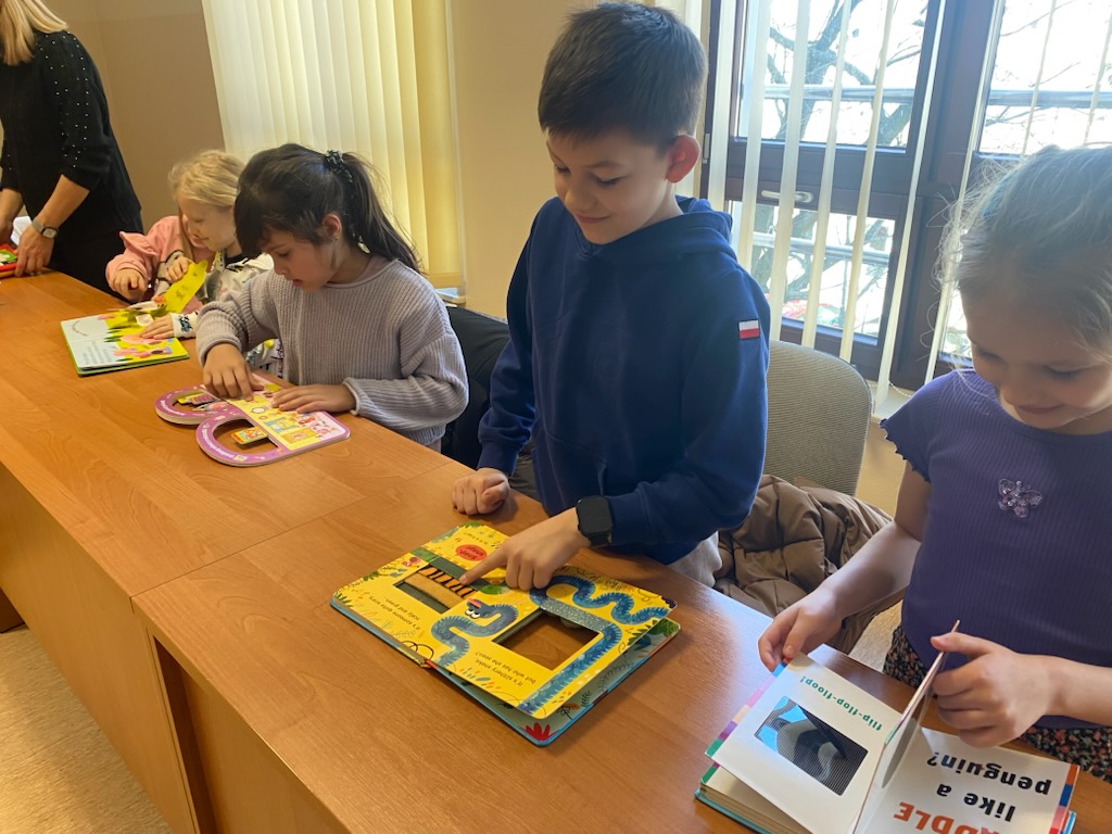 Dzieci z niezwykłą ciekawością i zainteresowaniem słuchały opowieści o tym, jak powstają takie książki. Mamy nadzieję, że je zainspirowałyśmy do czytania i odwiedzania biblioteki.