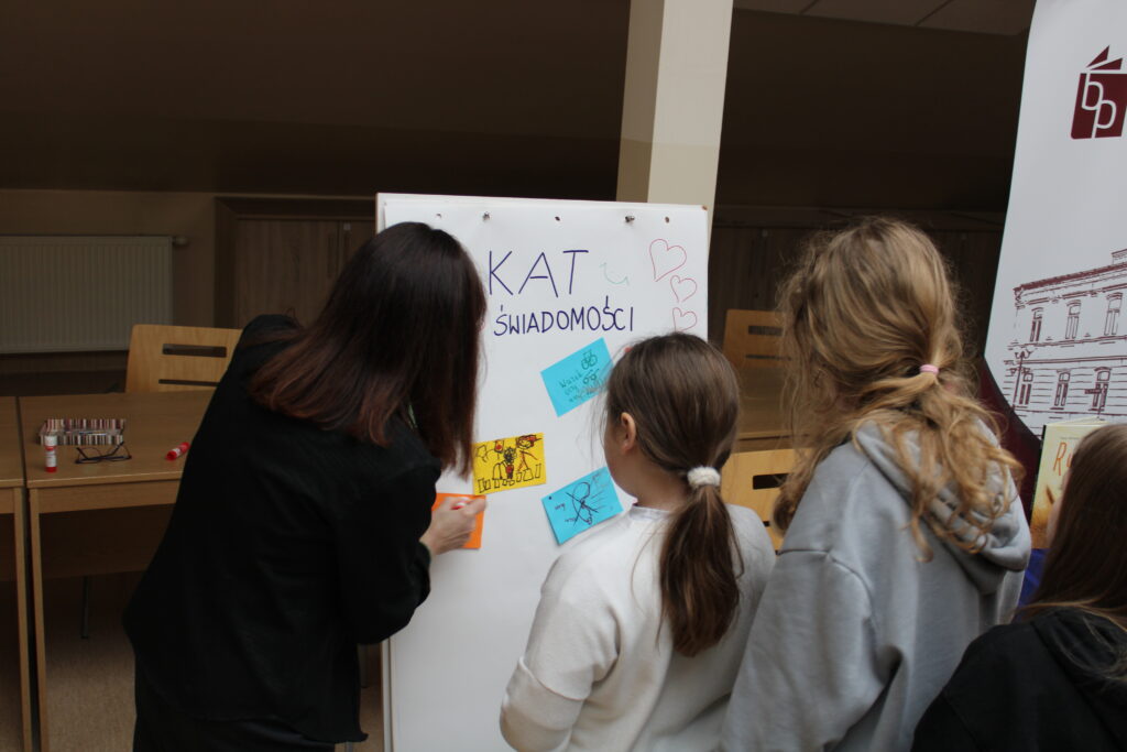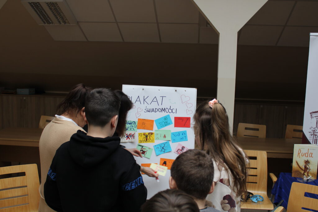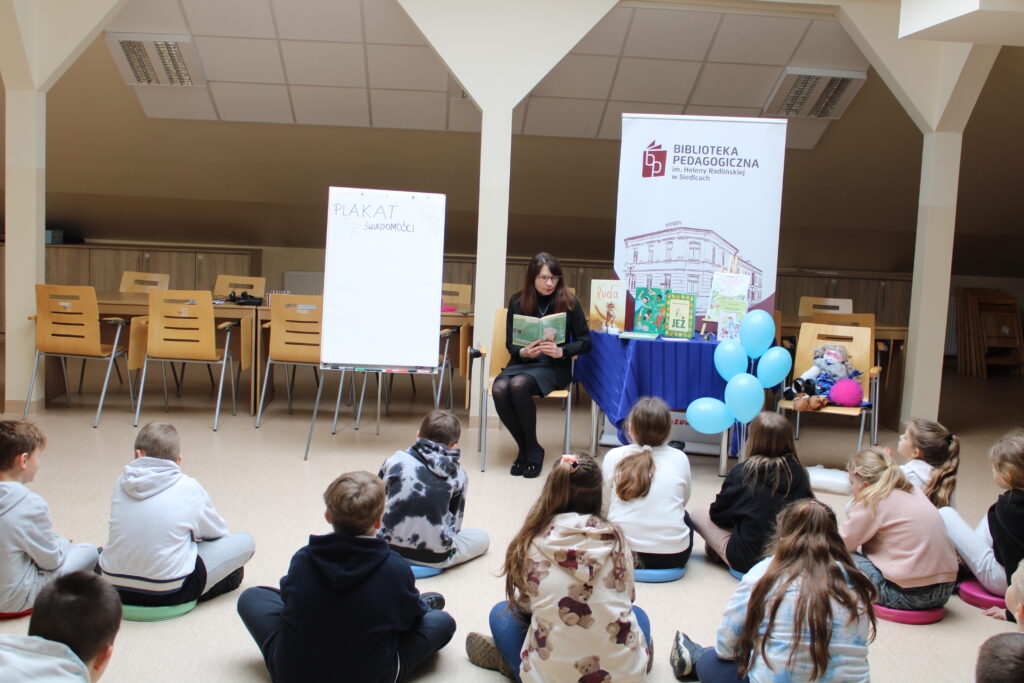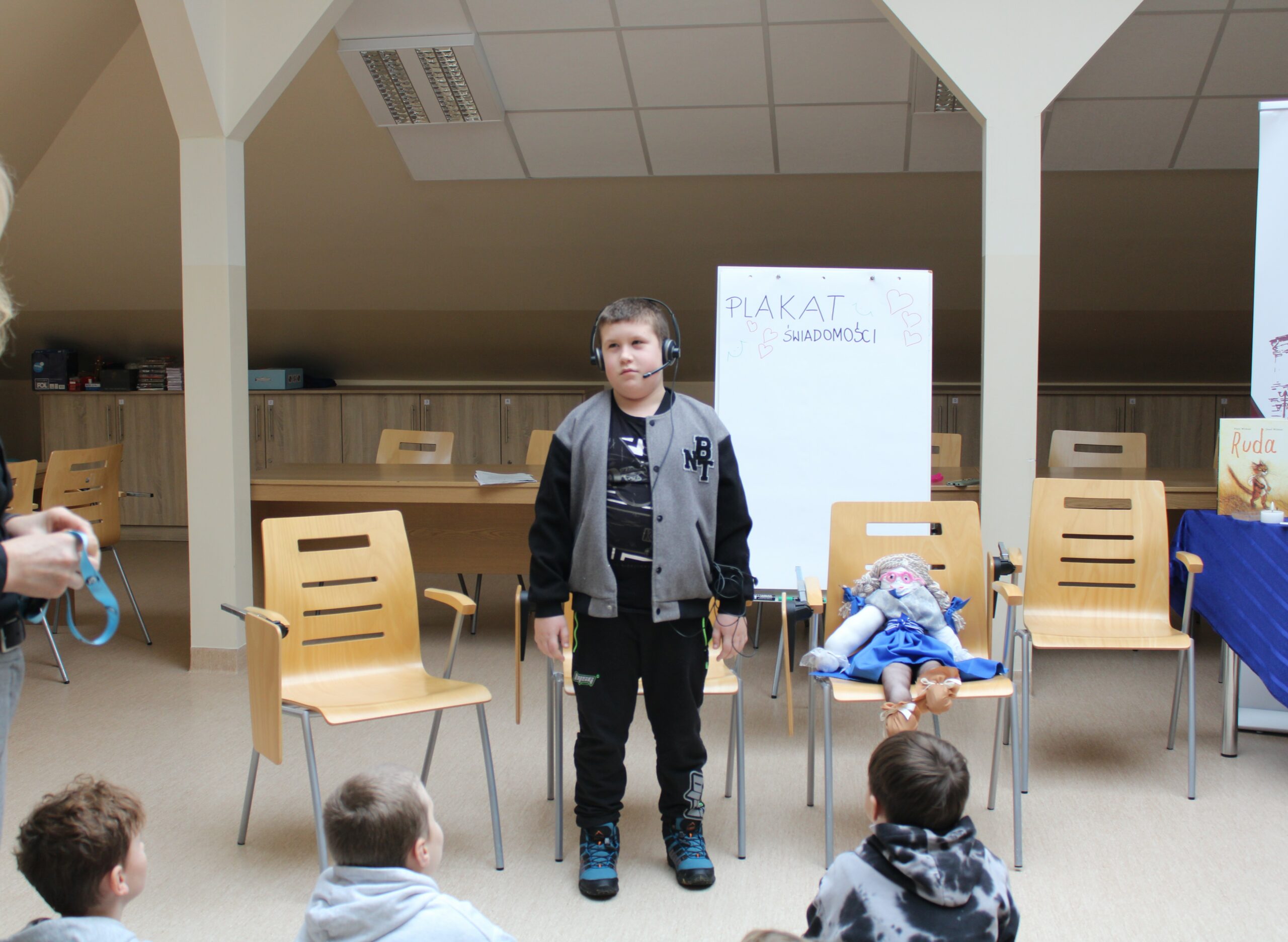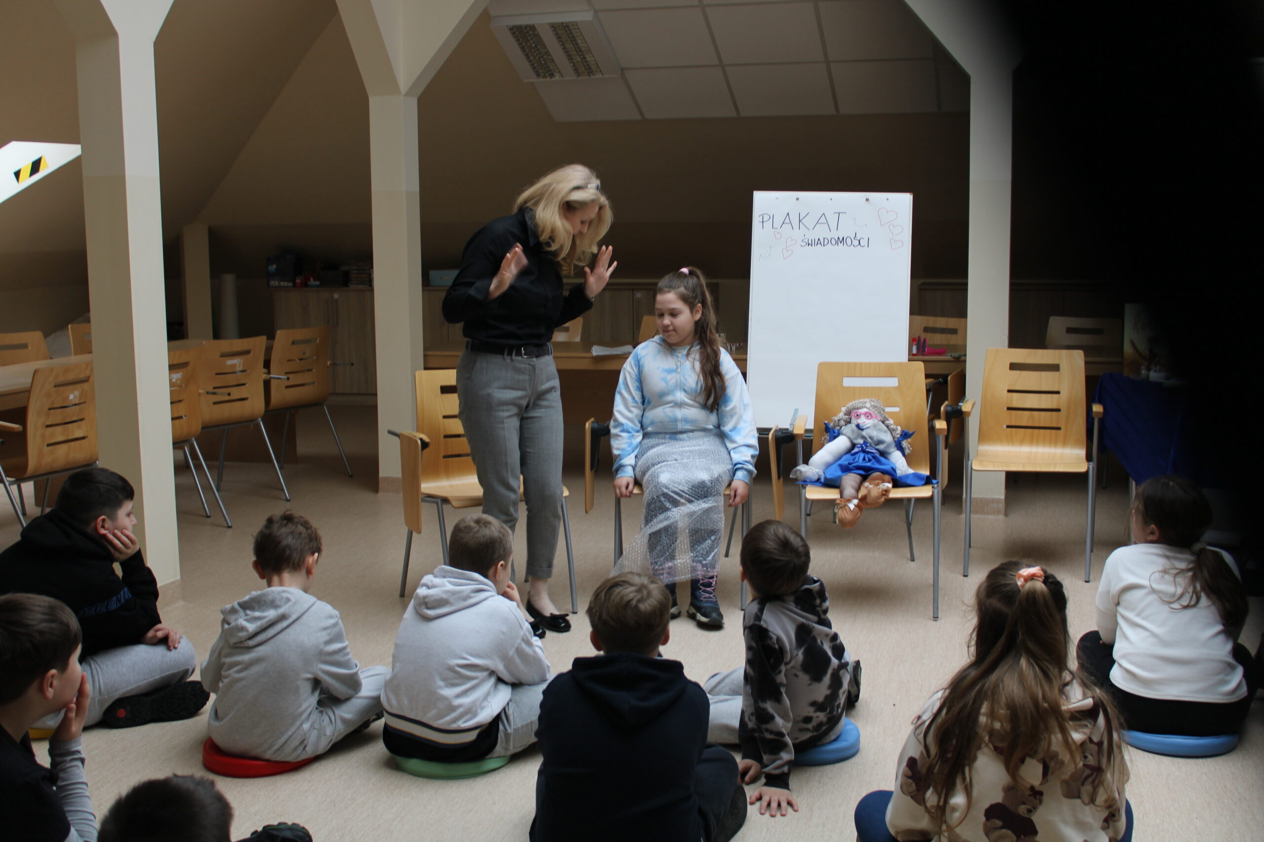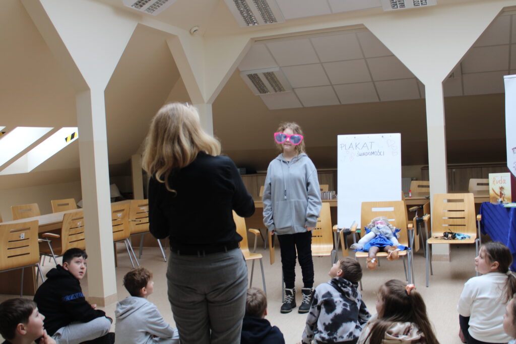 24 lutego odwiedziły nas dzieci z klasy III a Szkoły Podstawowej nr 7 w Siedlcach. Zajęcia dotyczyły IV modułu „Magiczna Moc Bajek – Razem Pokonamy Każdą Barierę – Różne Rodzaje Niepełnosprawności – Rozumiem, Szanuję, Akceptuję”. Lekcja poświęcona była osobom niewidzącym, niesłyszącym oraz poruszającym się na wózkach inwalidzkich. Opowiadanie Marcina Pałasza pt. „Amarylis” pomogło uczestnikom zrozumieć problem z jakim borykają się dzieci niepełnosprawne. Łapanie kudłaczka z zakrytymi oczami, czytanie z ust, czy poruszanie się ze związanymi nogami okazało się nie lada wyczynem. Zwieńczeniem wydarzenia było wykonanie plakatu „Rozumiem, szanuję, akceptuję”. Dziękujemy Paniom wychowawczyniom oraz dzieciom za czynny udział w zajęciach. Mamy nadzieję, że nigdy nie będziemy obojętni wobec osób niepełnosprawnych, potrzebujących pomocy.