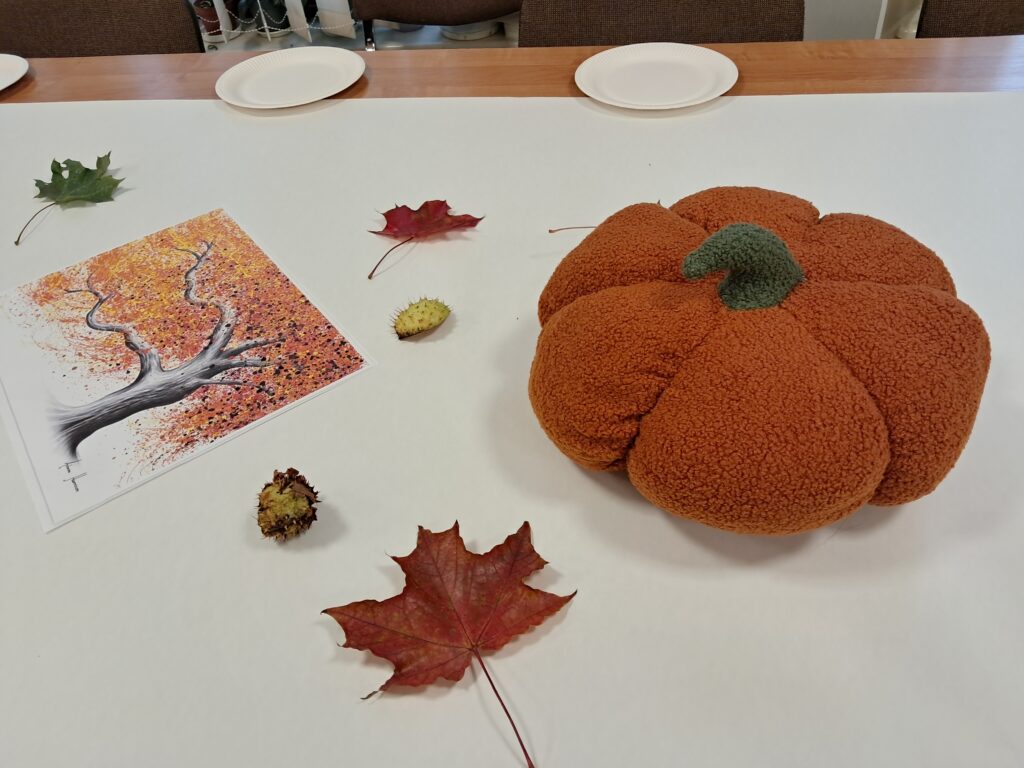 Tematem spotkania były różne sposoby wyobrażenia jesieni w pracach plastycznych i literaturze dla dzieci.