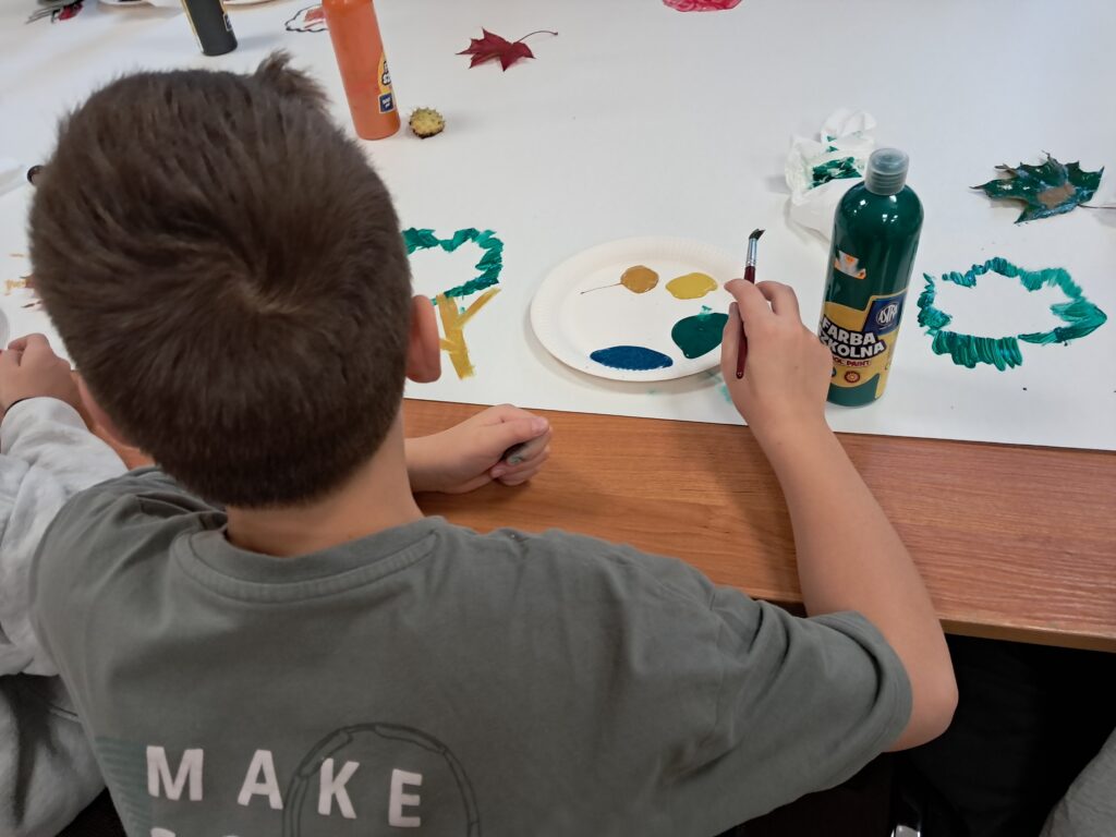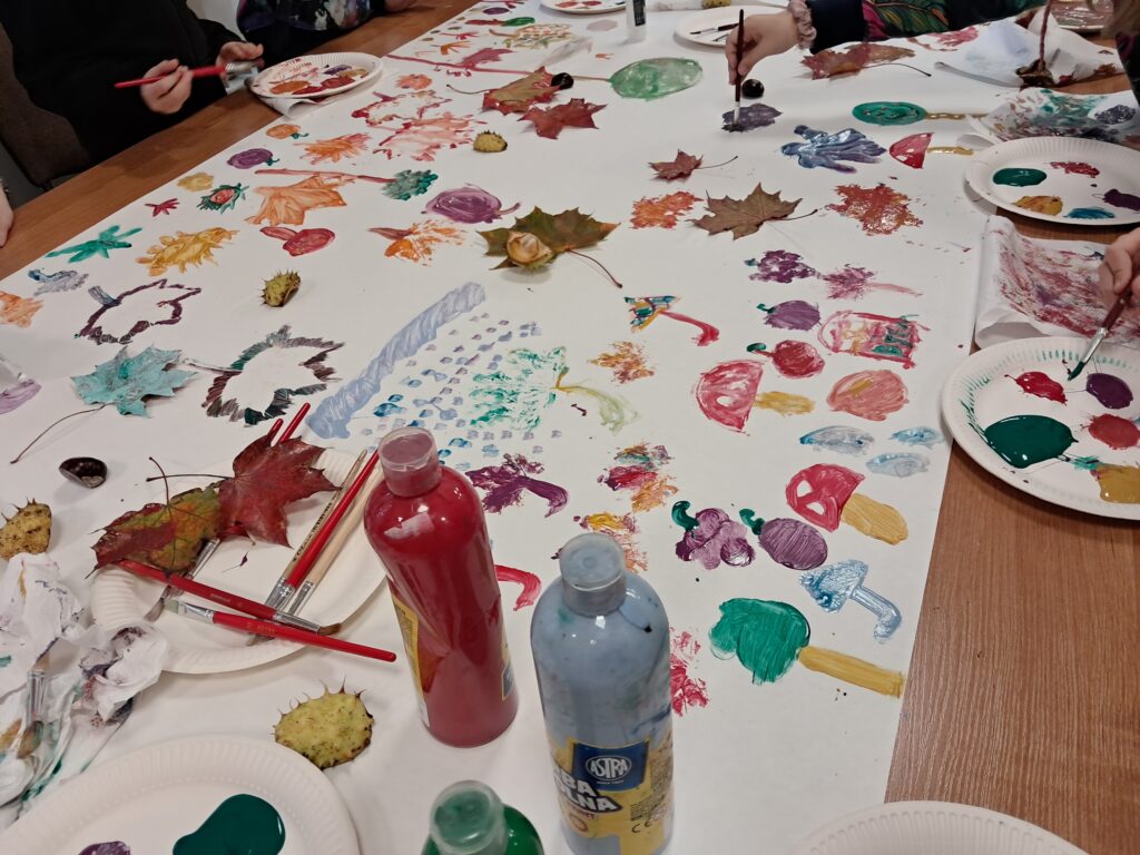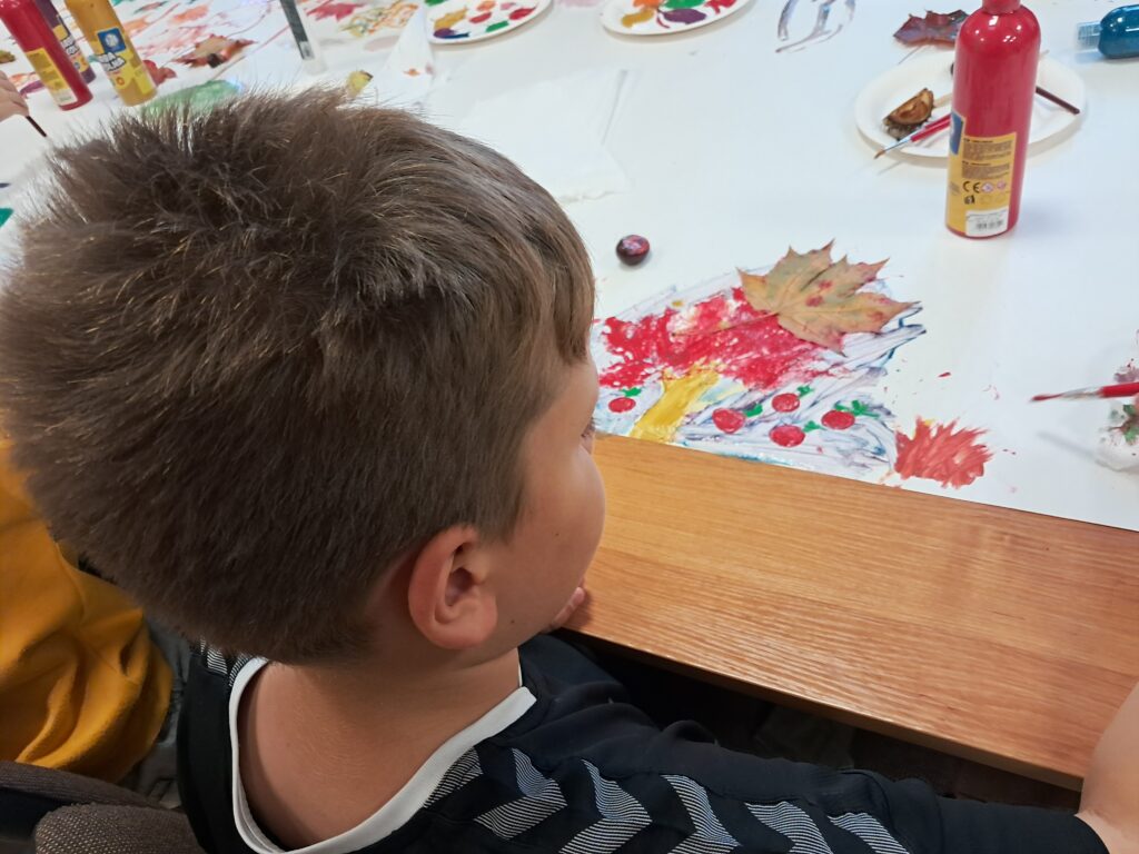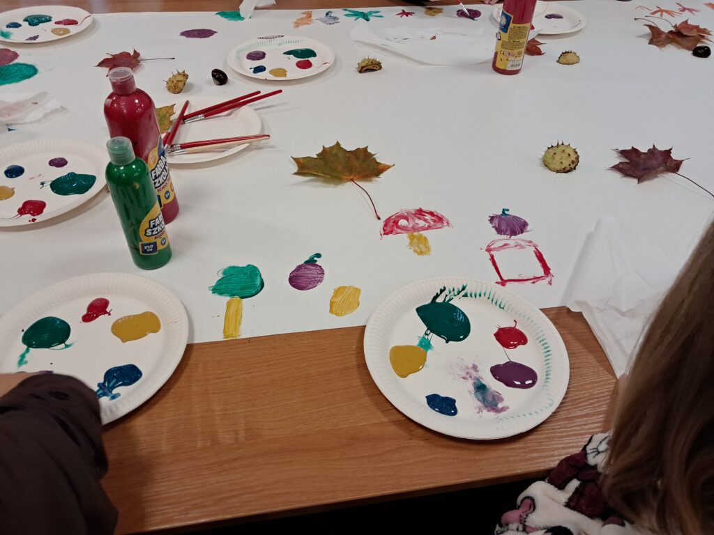 Tematem spotkania były różne sposoby wyobrażenia jesieni w pracach plastycznych i literaturze dla dzieci.