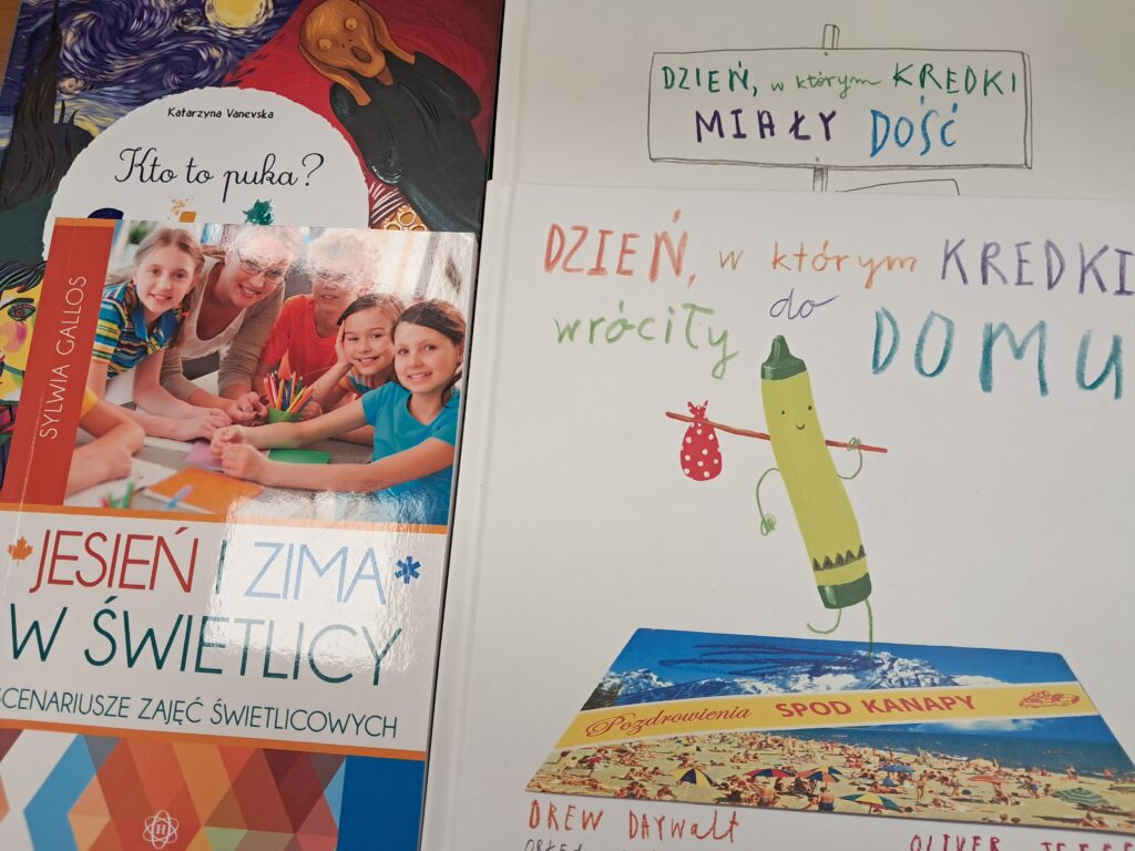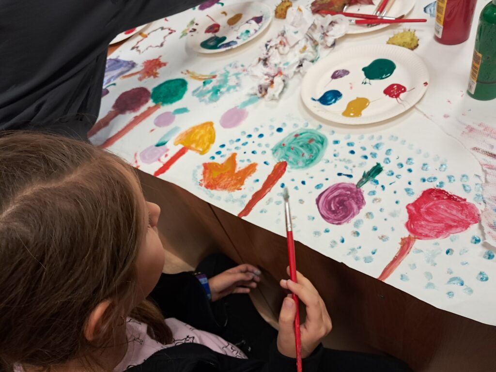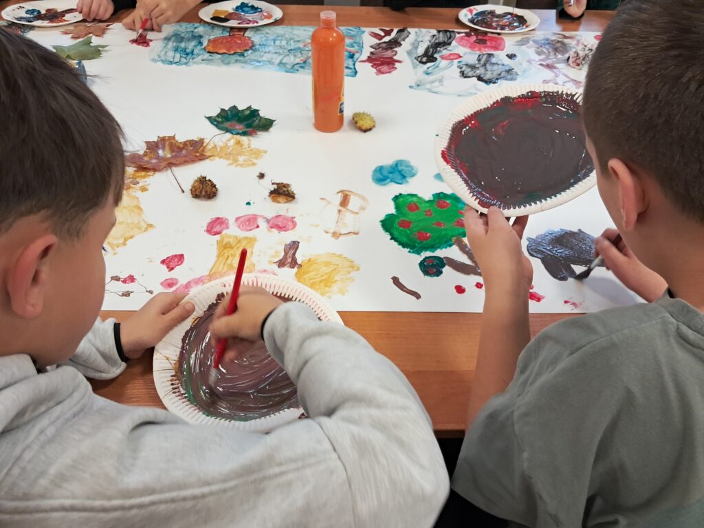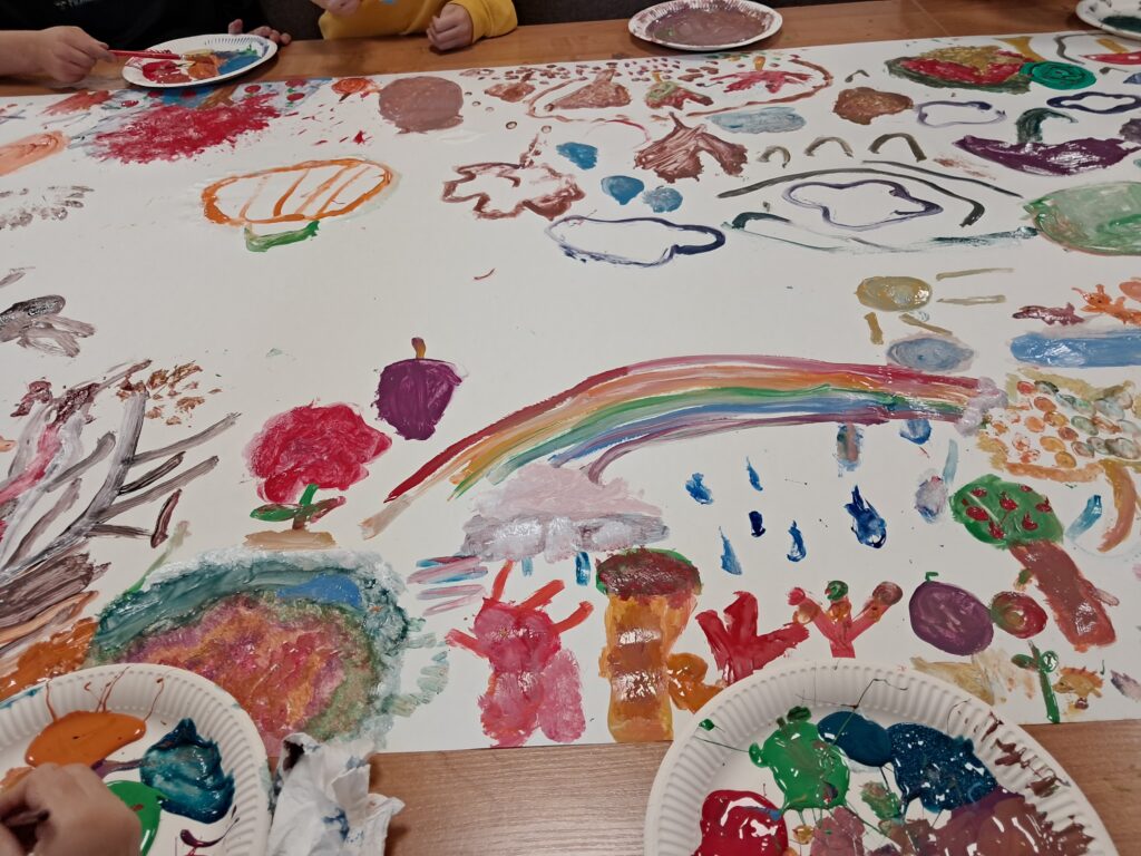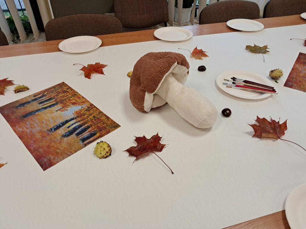 Tematem spotkania były różne sposoby wyobrażenia jesieni w pracach plastycznych i literaturze dla dzieci.