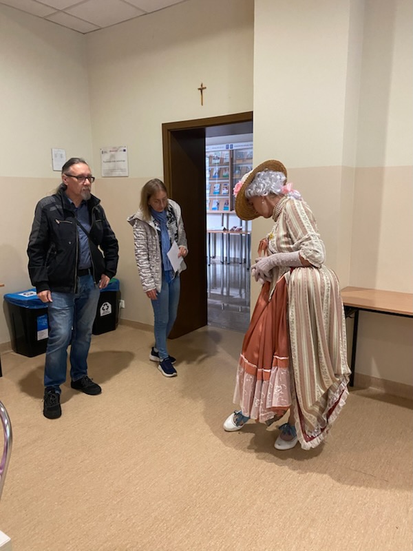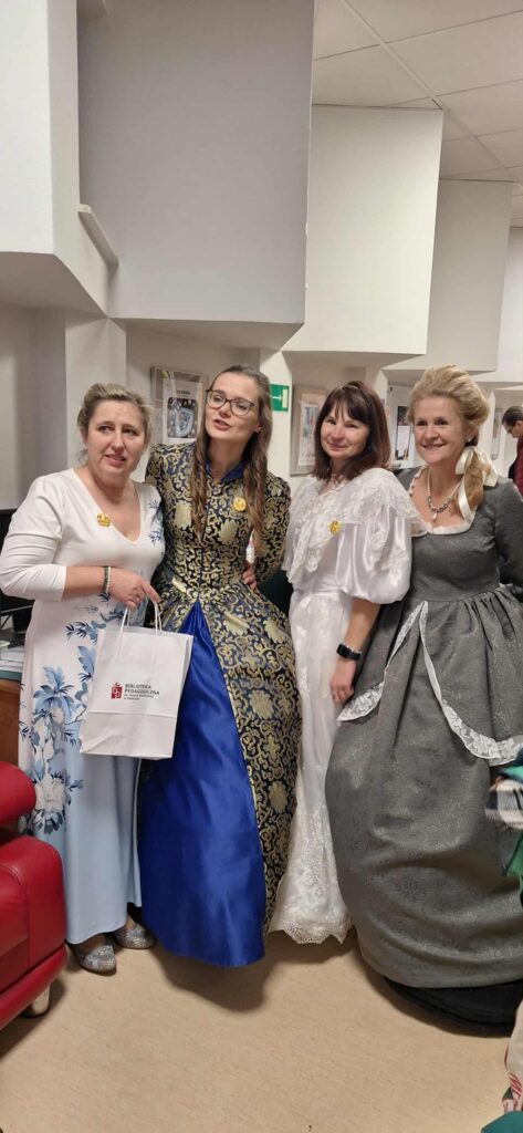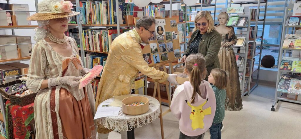 Działo się u nas wiele! Wspaniałą zabawę zapewnił udział w grze miejskiej, dzięki której można było poszerzyć wiedzę o Siedlcach. Uczestnicy gry wyruszyli do miasta aby odpowiedzieć na pytania przygotowane w poszczególnych zestawach. Wszyscy uczestnicy gry bawili się doskonale. Dodatkową atrakcją była Pani Przewodnik PTTK Natalia Zyśk, która pomagała uczestnikom gry rozwikłać trudniejsze zadania i dzieliła się swoją ogromną wiedzą o Siedlcach. W klimacie czasów księżnej Ogińskiej w bibliotece zagościły damy dworu i panowie, nie zabrakło oczywiście samej księżnej, która zachwycała swoim strojem. Nasi goście rozwiązywali zagadki, które odkrywały piękną historię Siedlec.