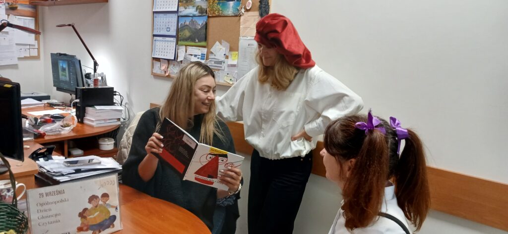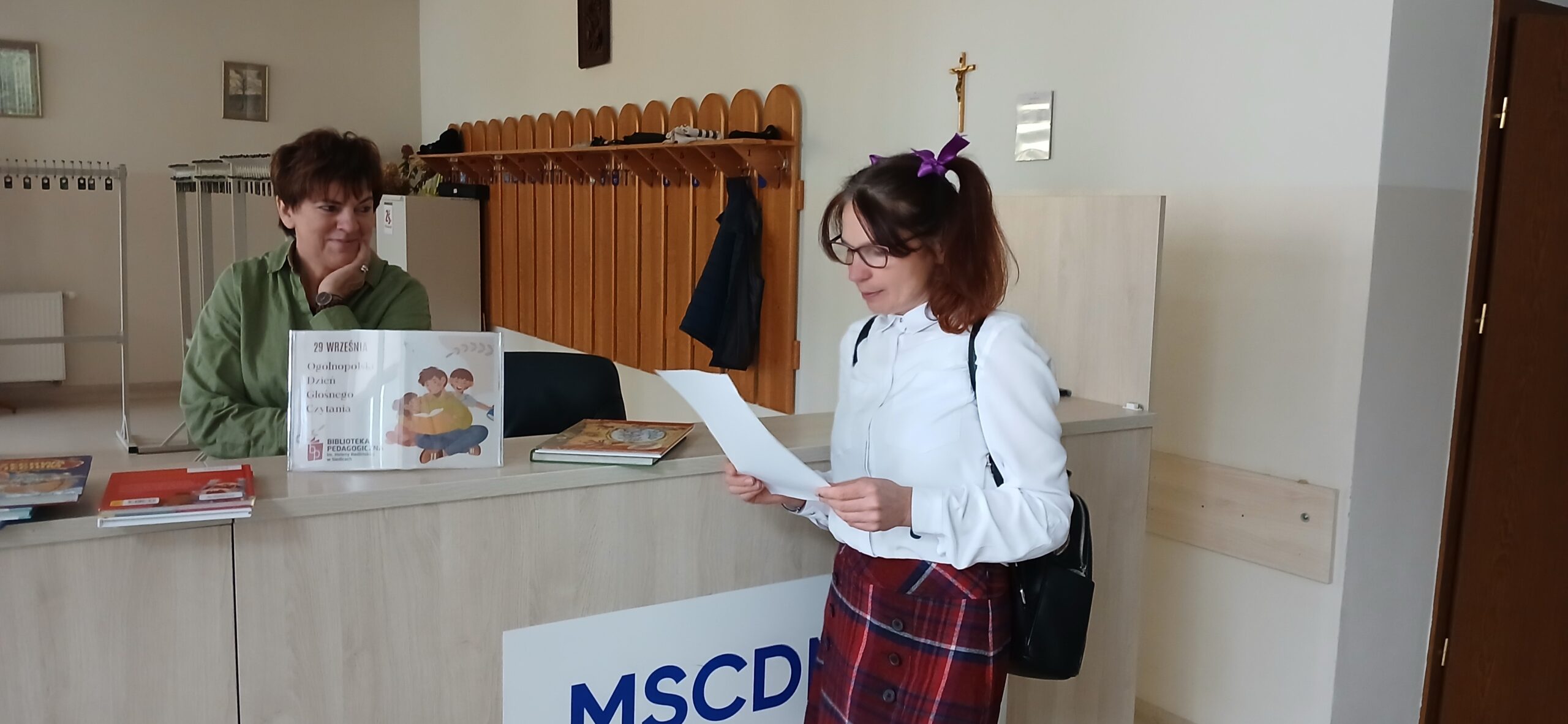 Wydarzenie rozpoczęły Panie Dyrektor Dorota Salamon oraz Marzena Kowalczuk. Następnie odwiedziłyśmy kolejne działy biblioteki oraz koleżanki z Mazowieckiego Samorządowego Centrum Doskonalenia Nauczycieli Wydział w Siedlcach. Wszyscy chętnie wzięli udział w naszej akcji, za co otrzymali po słodkim upominku. Serdecznie dziękujemy za przyłączenie się do naszej inicjatywy. Czytajmy na głos dla tych, którzy jeszcze nie poznali tej umiejętności, jak i dla tych, którzy już ją utracili. Święto warto obchodzić każdego dnia, a jeżeli każdy poświęci na czytanie choć 30 minut, będzie to ogromny sukces.