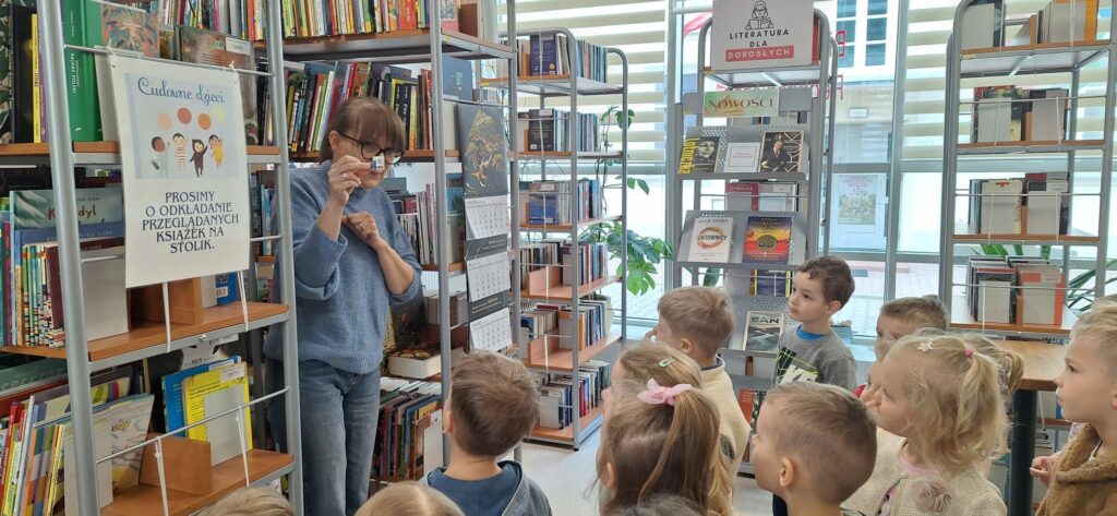 Na zwiedzanie biblioteki i poszukiwanie bajkowych zagadek swoją energię spożytkowała grupa „Spryciarzy” z Miejskiego Przedszkola nr 15 w Siedlcach. Sympatyczne czterolatki m.in. poznały różne zbiory biblioteczne, zobaczyły najmniejszą książkę, otrzymały podarunek od Jasia i Małgosi, obejrzały magazyn oraz zdały egzamin na bibliotekarza. Spotkanie zakończyło się wspólnym czytaniem dźwiękowej bajki o Czerwonym Kapturku. Dziękujemy za wizytę i czekamy, aż wrócą jako nasi czytelnicy.
