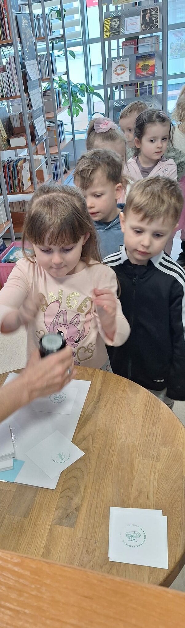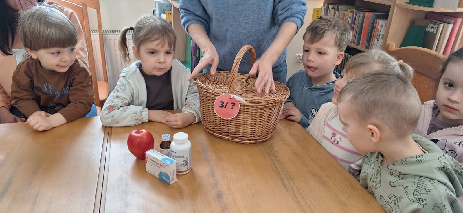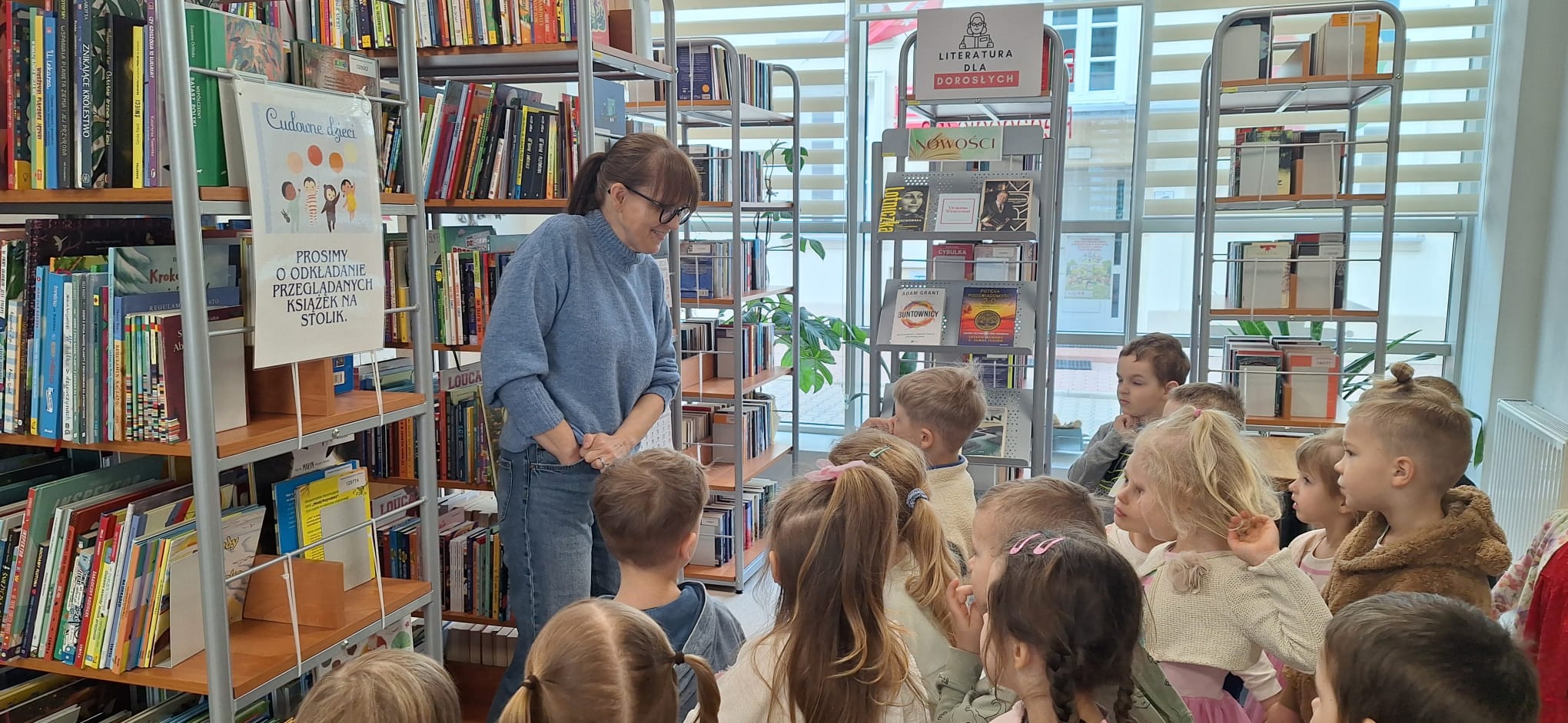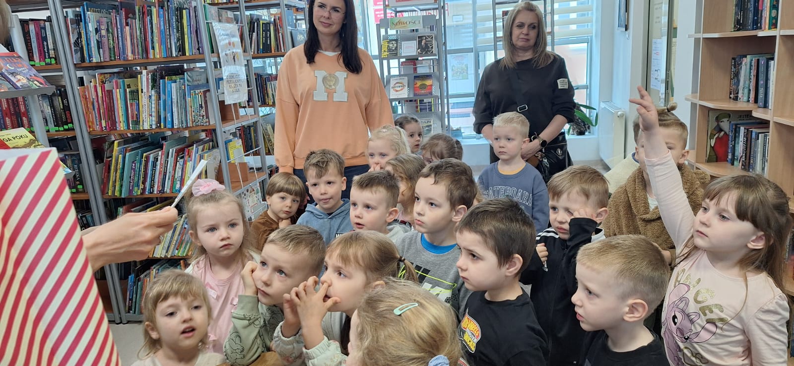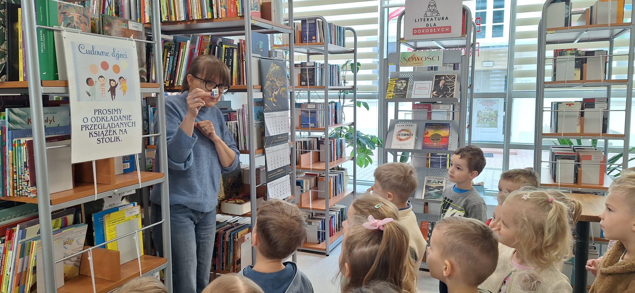 Na zwiedzanie biblioteki i poszukiwanie bajkowych zagadek swoją energię spożytkowała grupa „Spryciarzy” z Miejskiego Przedszkola nr 15 w Siedlcach. Sympatyczne czterolatki m.in. poznały różne zbiory biblioteczne, zobaczyły najmniejszą książkę, otrzymały podarunek od Jasia i Małgosi, obejrzały magazyn oraz zdały egzamin na bibliotekarza. Spotkanie zakończyło się wspólnym czytaniem dźwiękowej bajki o Czerwonym Kapturku. Dziękujemy za wizytę i czekamy, aż wrócą jako nasi czytelnicy.