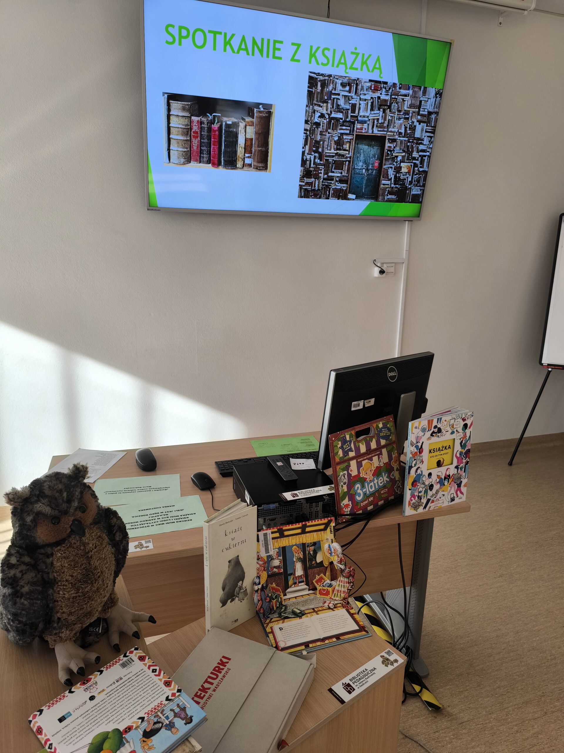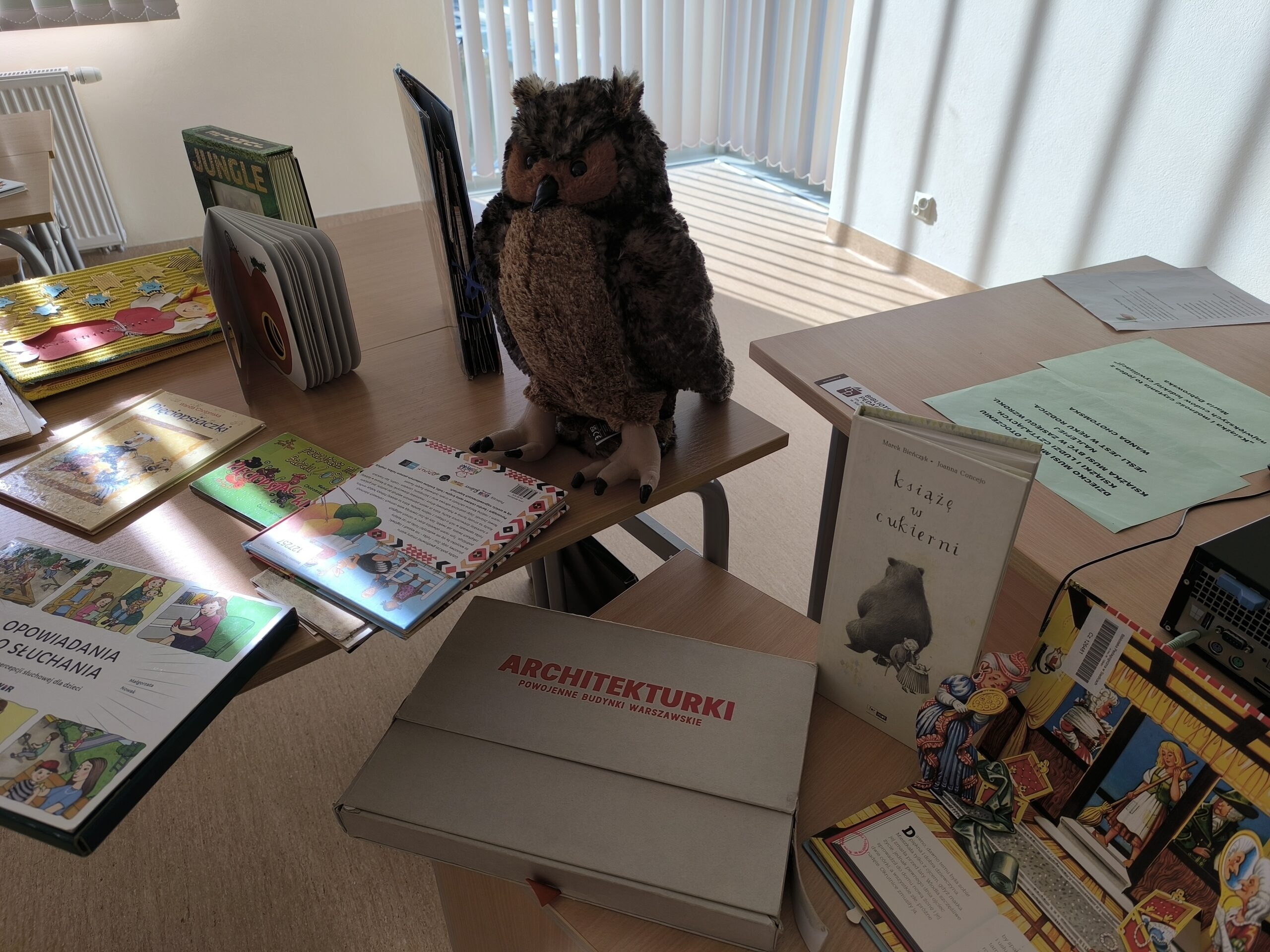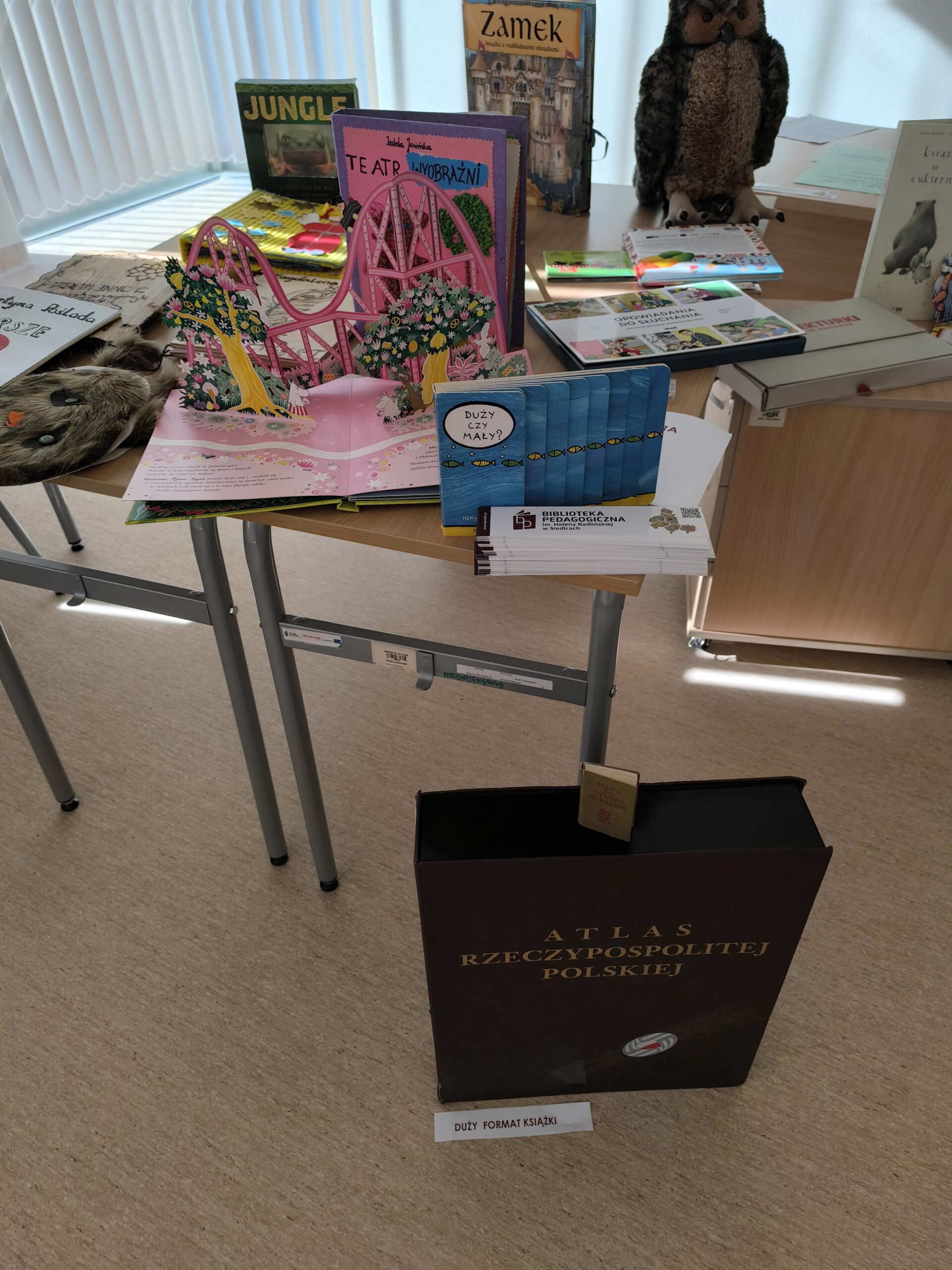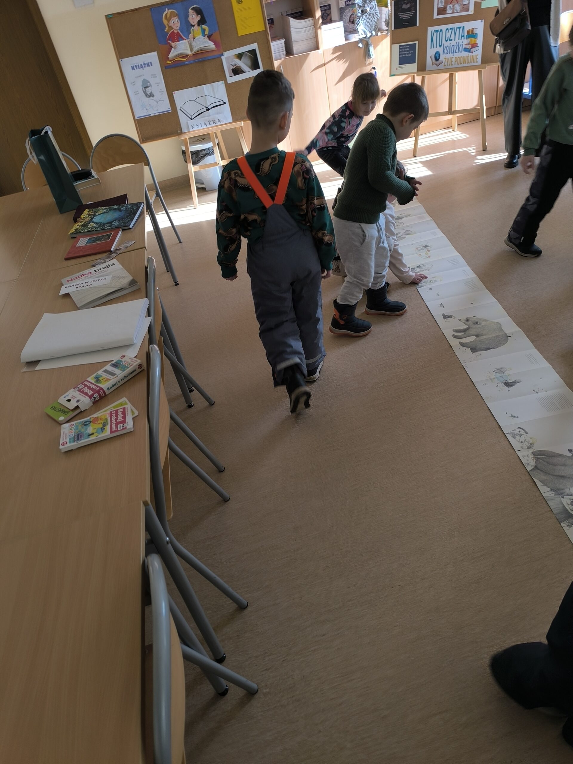 Podczas zajęć dzieci obejrzały wyjątkowe i nietypowe książki z naszego księgozbioru: od magicznej książki, przez najmniejszą i największą, aż po książki pachnące truskawką czy te w formie przestrzennej. Dużym zainteresowaniem cieszyły się również książki wykonane przez starszych uczniów, nadesłane na konkurs „Wydajemy własną książkę”.