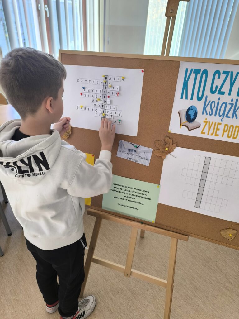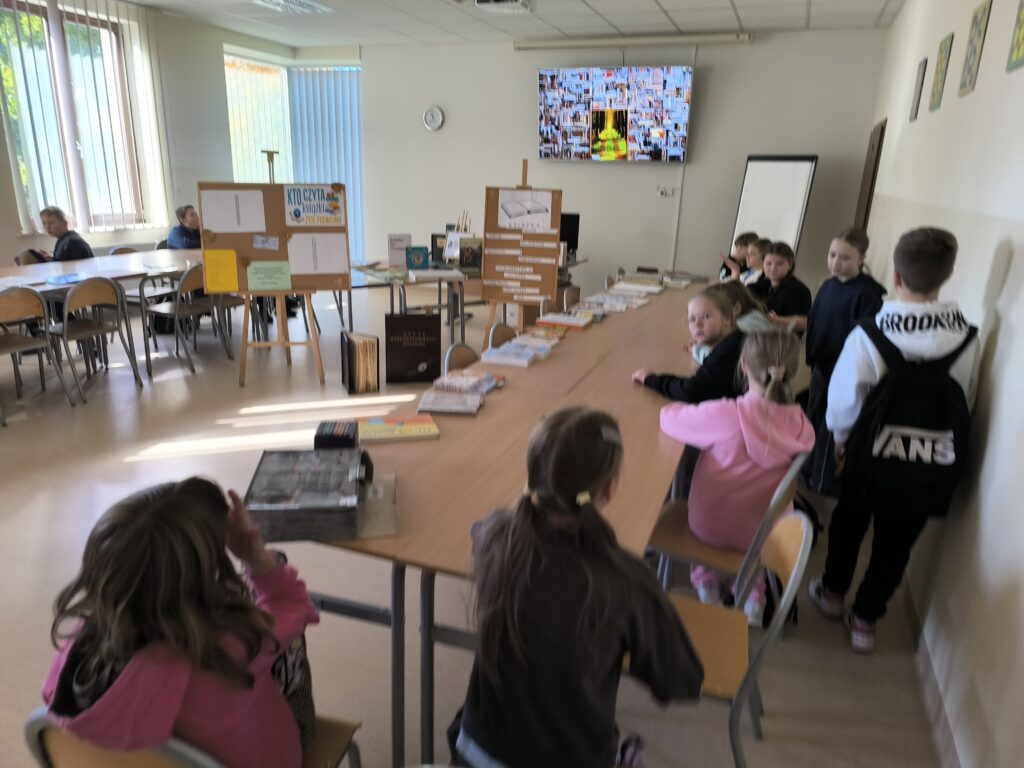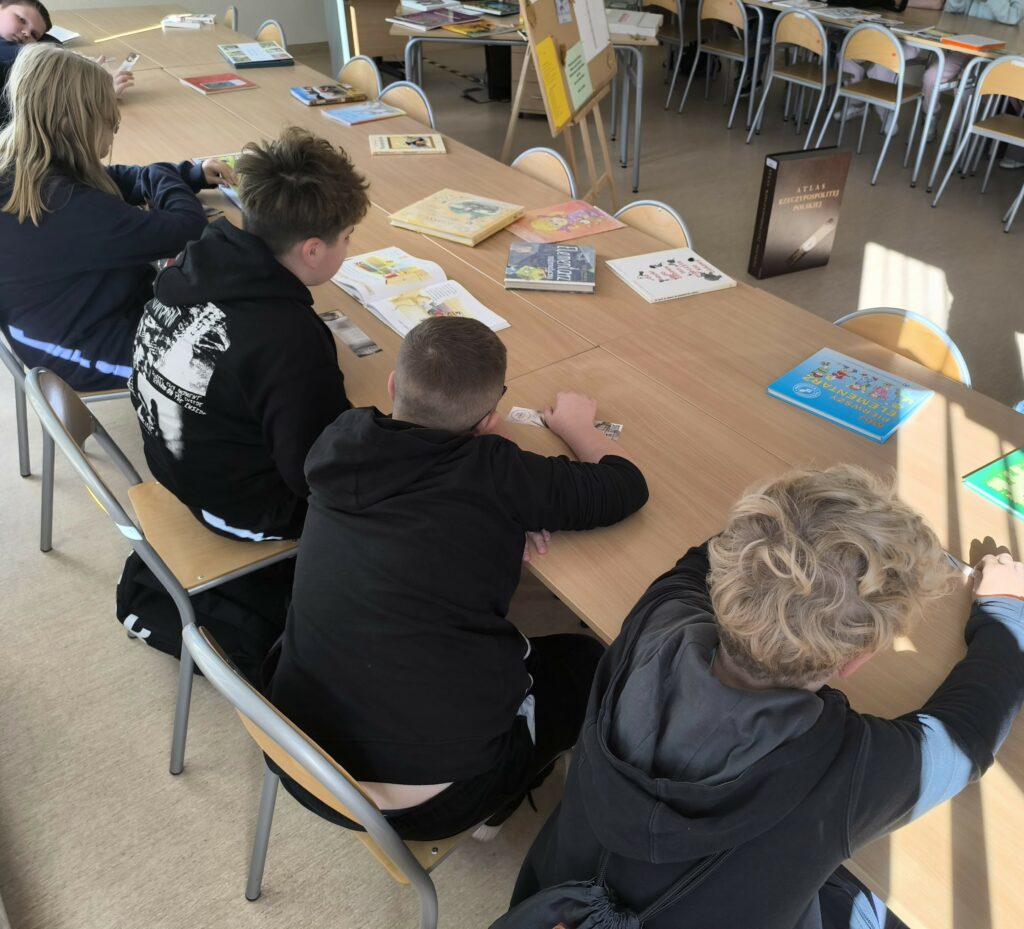 Podczas spotkania uczniowie mieli okazję rozwiązywać tematyczne krzyżówki, uczestniczyć w rozmowach o książkach i czytaniu, a także obejrzeć nietypowe wydawnictwa oraz zbiory znajdujące się w bibliotece.