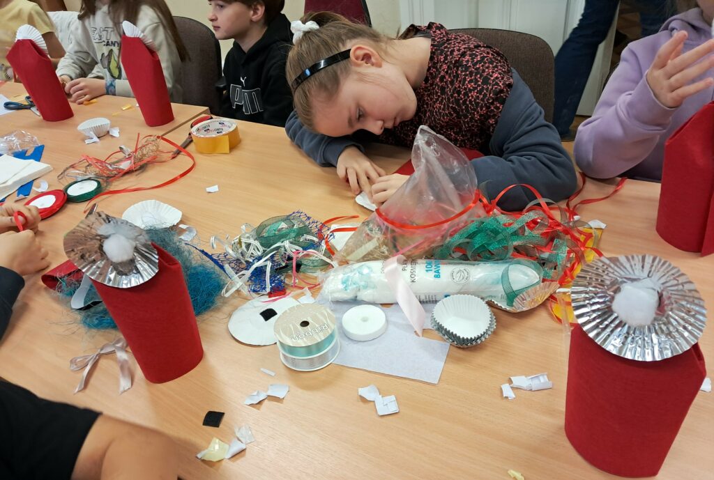 15 grudnia uczennice i uczniowie klasy III c ze Szkoły Podstawowej nr 1 w Siedlcach wraz z wychowawczynią, wzięli udział w zajęciach plastycznych dotyczących ozdób i dekoracji bożonarodzeniowych.