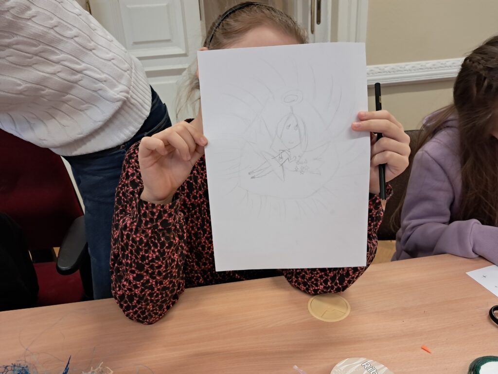 Następnie wykonali rysunek anioła lub Świętego Mikołaja, posługując się ołówkiem. Dzieci wykazały się tutaj dużą kreatywnością i pomysłowością.