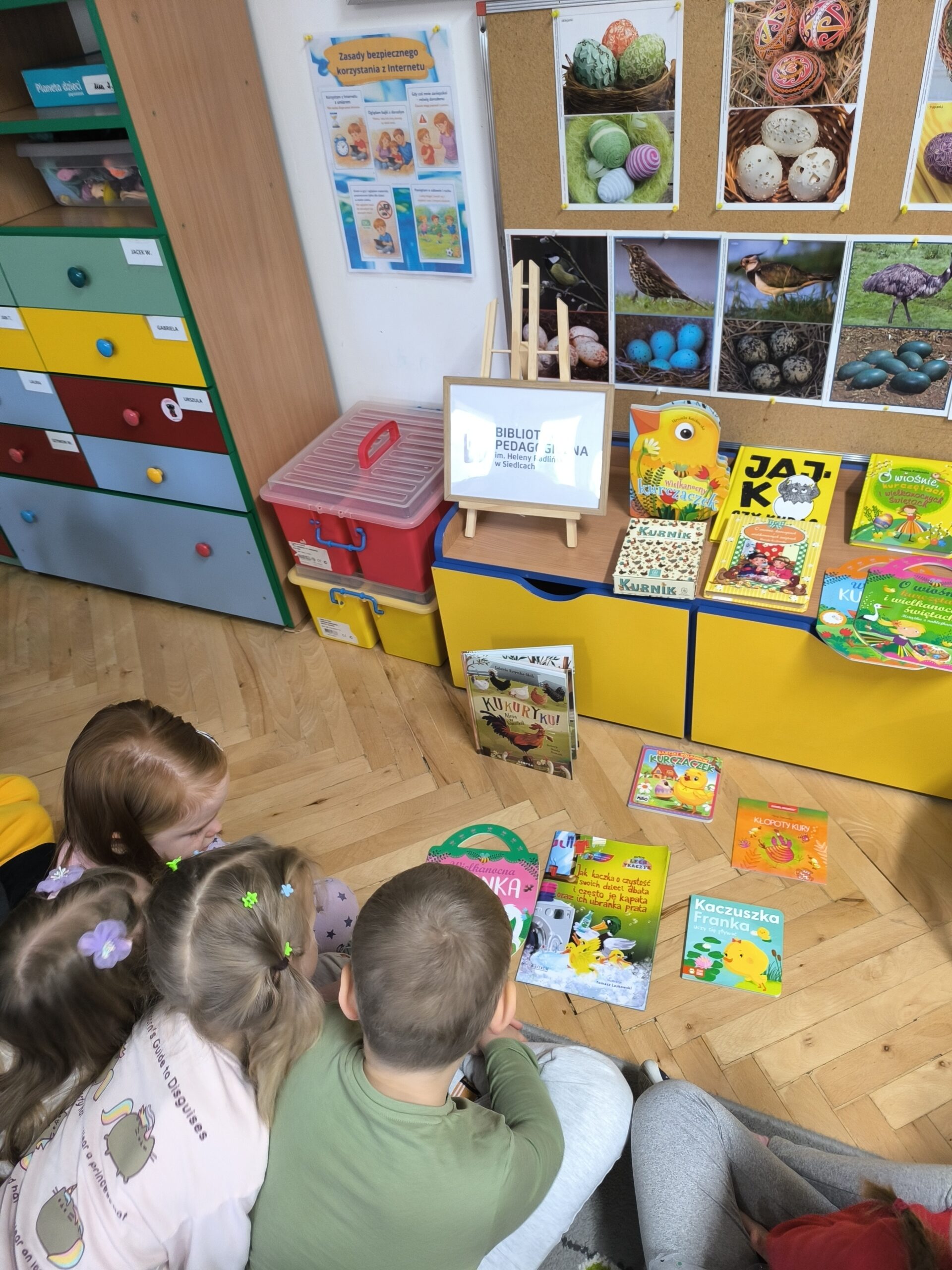 1 kwietnia w Miejskim Przedszkolu nr 17 w Siedlcach odbyły się zajęcia czytelnicze poświęcone wielkanocnym tradycjom, ze szczególnym uwzględnieniem jednego z najważniejszych symboli świąt – jajka. Dzieci z zainteresowaniem wysłuchały opowiadań i bajek pełnych kolorowych pisanek, wesołych zajączków, kurczaczków oraz zwyczajów związanych z Wielkanocą.
