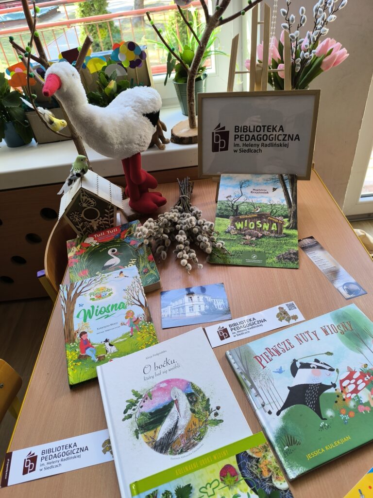 18 marca odbyły się zajęcia czytelnicze, w których uczestniczyły czterolatki z Miejskiego Przedszkola Integracyjnego nr 20 w Siedlcach. Spotkanie odbyło się pod hasłem „Wiosna w książkach”. Przedszkolaki wyruszyły w pełną kolorów podróż po wiosennych bajkach i opowieściach. Dzieci słuchały historii o budzącej się do życia przyrodzie, pierwszych kwiatach oraz o ptakach wracających z dalekich krajów. Wspólnie odkrywaliśmy, jakie zwiastuny wiosny możemy spotkać wokół nas: zieleniącą się trawę, śpiew ptaków, kwitnące przebiśniegi i krokusy oraz przylatujące bociany.