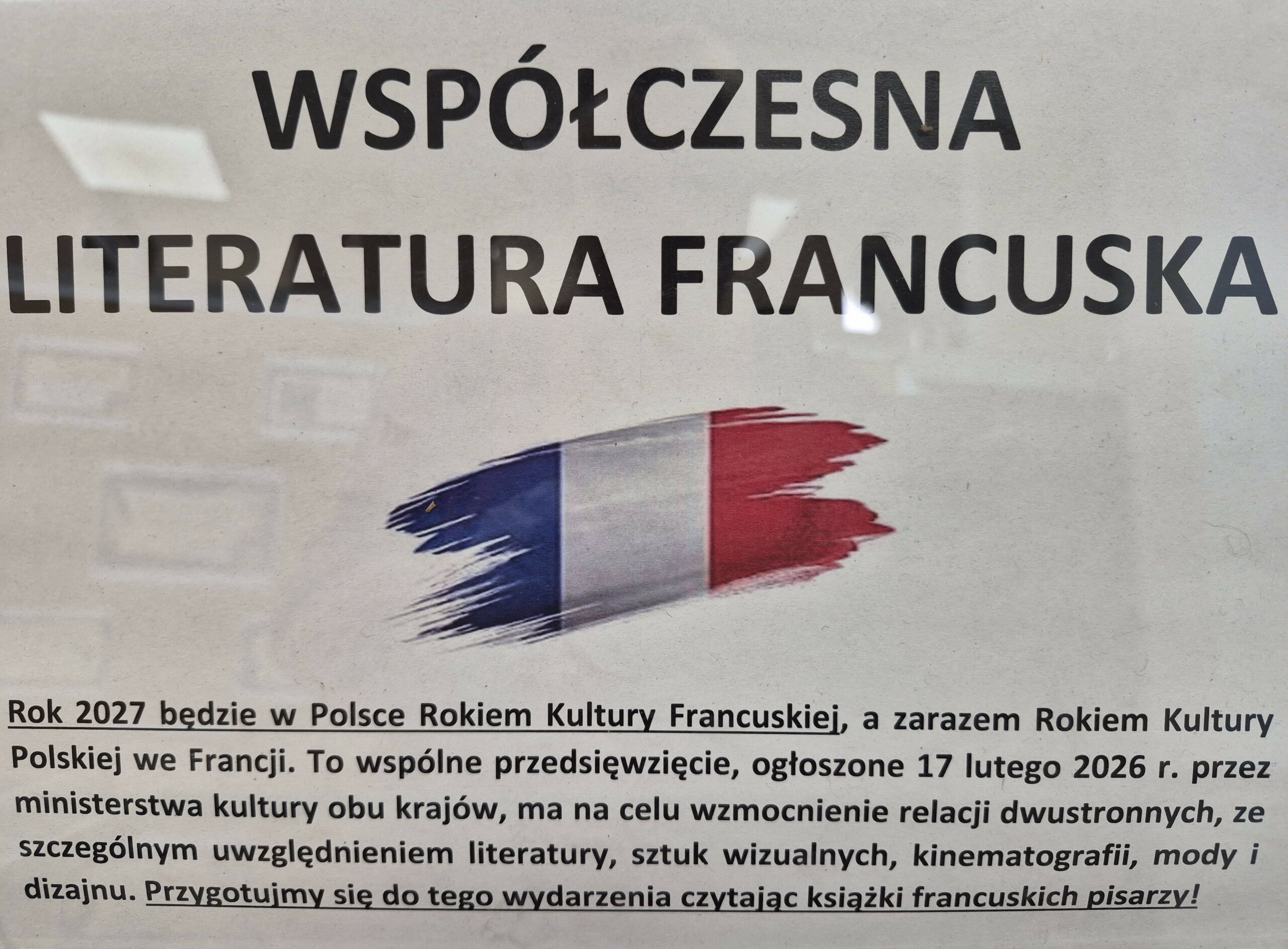 Rok 2027 będzie w Polsce rokiem kultury francuskiej. Dlatego chcemy zachęcić wszystkich do głębszego zajnteresowania się publikacjami książkowymi z Francji.