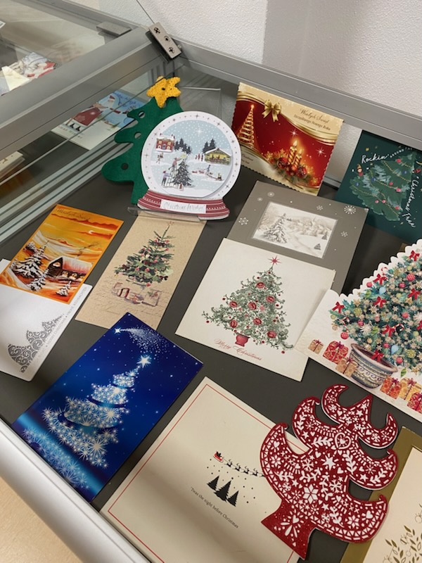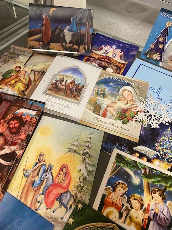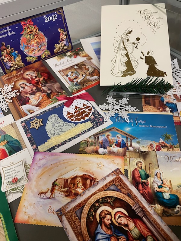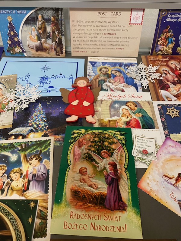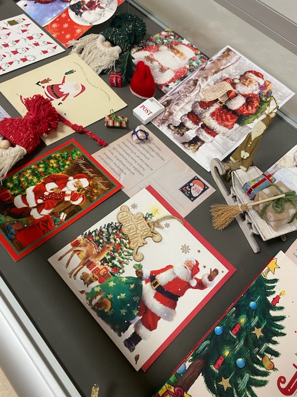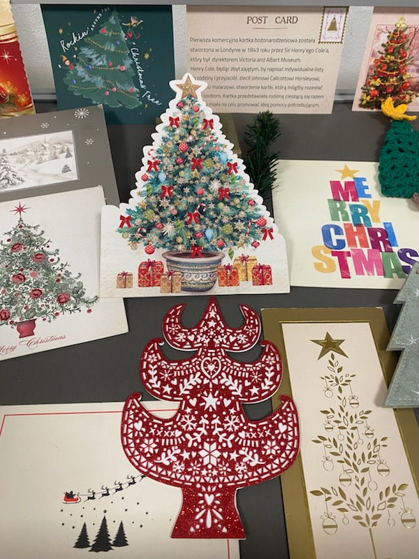 W gablotach w holu biblioteki zaprezentowano wyjątkową wystawę pocztówek bożonarodzeniowych pochodzących z Europy, Ameryki Północnej i Azji. Ekspozycja ukazuje, jak różnorodnie przedstawiane są motywy świąteczne w zależności od kultury, tradycji oraz lokalnej estetyki. Na kartkach z Europy dominują klasyczne sceny – święta rodzina z maleńkim Jezusem, zimowe pejzaże, choinki, anioły i wizerunki św. Mikołaja. Z wystawy dowiecie się Państwo kto jest autorem nazwy pocztówka, a także gdzie powstały pierwsze komercyjne kartki bożonarodzeniowe.