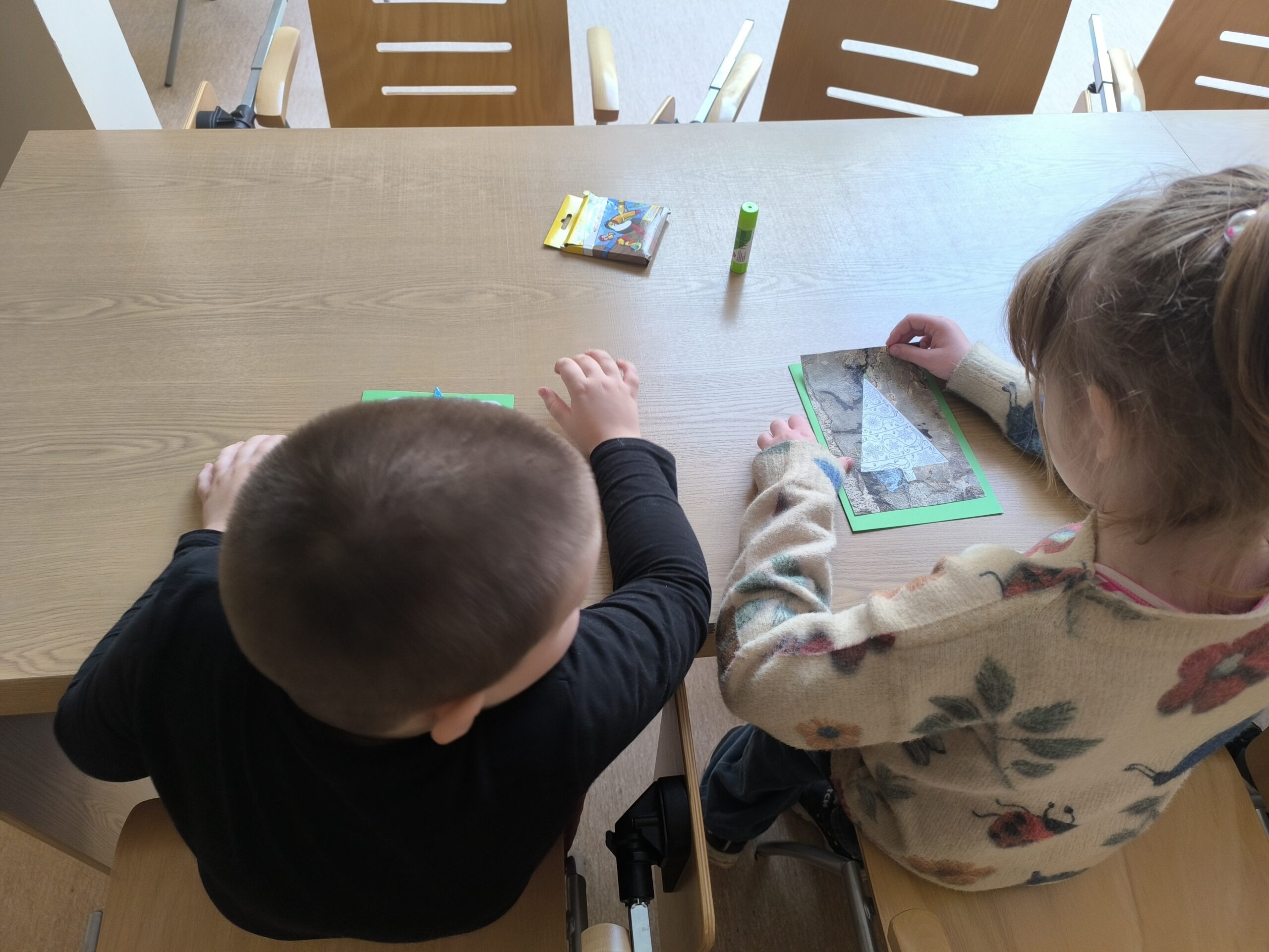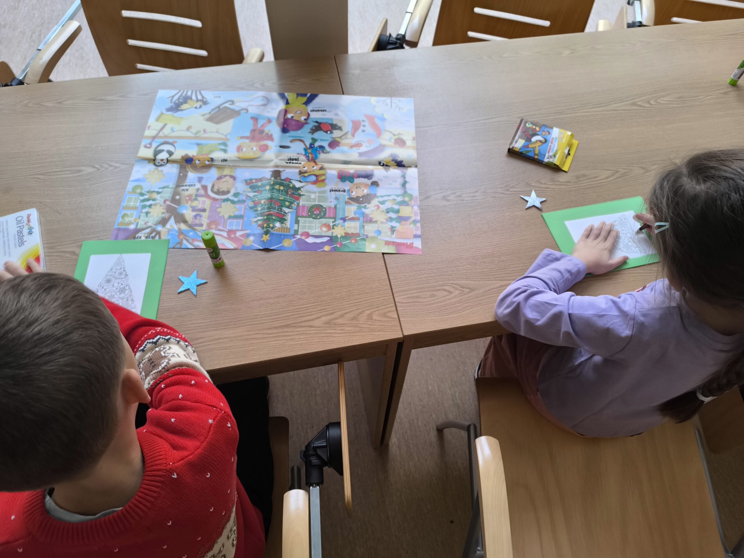 Z dużym zaangażowaniem wykonały także własne zimowe kartki, które stały się piękną pamiątką spotkania oraz dowodem ich kreatywności. W trakcie zajęć wysłuchały opowiadań, wierszy i przysłów związanych z zimową tematyką, a na zakończenie obejrzały animację „Reksiowa zima”, która wywołała wiele uśmiechów i radości.