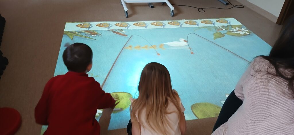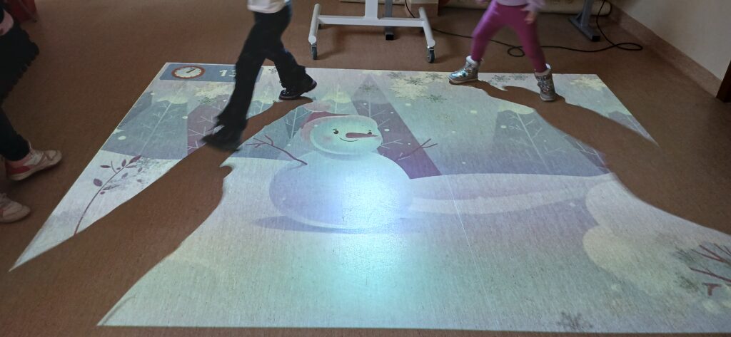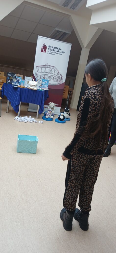 Kolejnym etapem spotkania było wysłuchanie fragmentu opowiadania pt. „Kodeks bałwanka” Simona Stephensona. Punktem kulminacyjnym spotkania okazał się Magiczny Dywan. Dzieci mogły wykazać się zręcznością i spostrzegawczością uczestnicząc w zabawie: „Pantomina”, „Literkowe puzzle”, czy „Tworzenie wyrazów”. W zimowy klimat wprowadziły je natomiast gry relaksujące, takie jak: „Śnieżynki”, „Zima za oknem”, „Ukryte zwierzątko”, „Pingwinek”. Zabawa była przednia. Cieszymy się bardzo, że mogłyśmy sprawić przyjemność uczestnikom. Dziękujemy Paniom i dzieciom za przybycie i zapraszamy do korzystania z naszych zbiorów oraz zabaw z Magicznym dywanem.